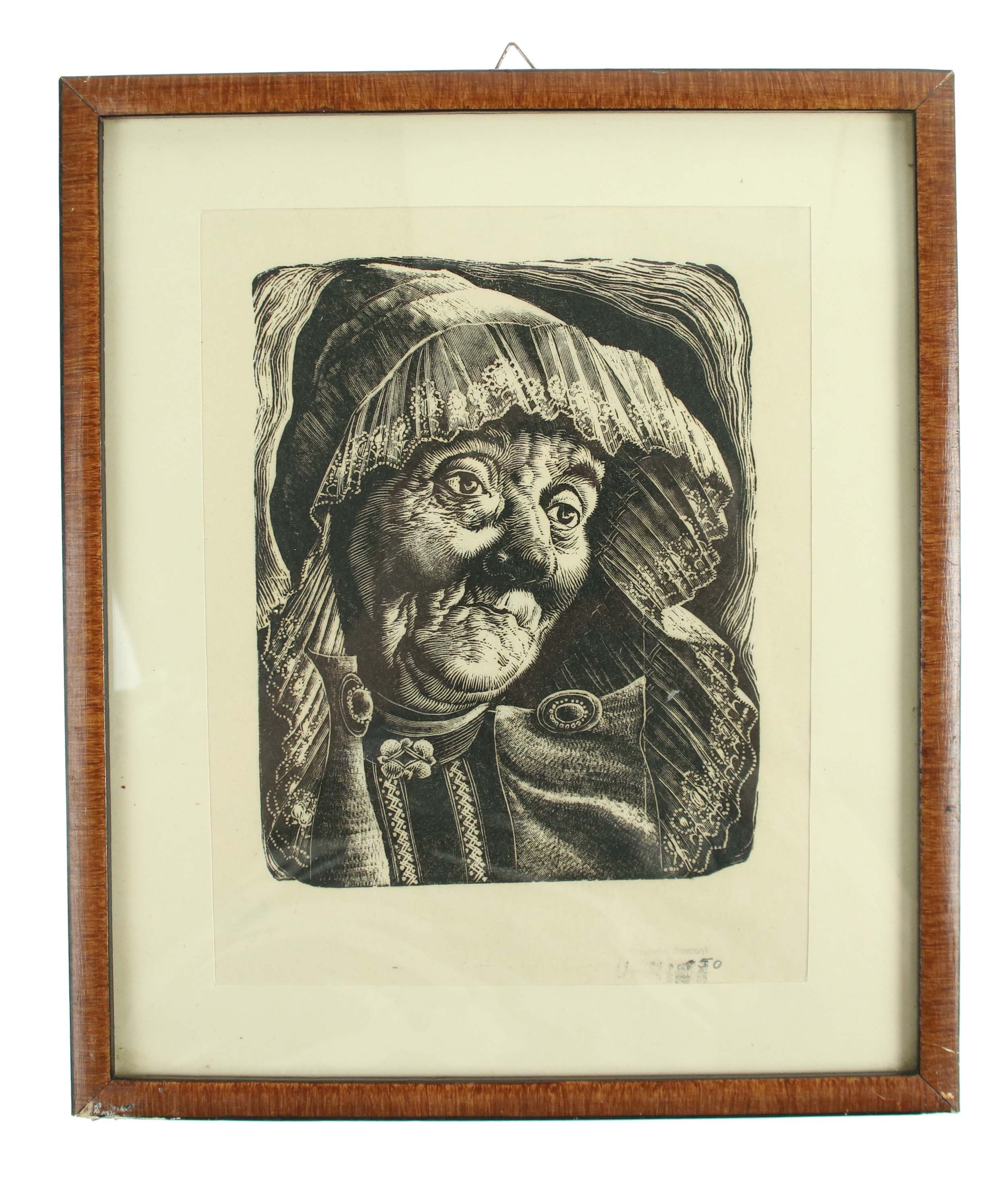 Paweł STELLER (1895-1974), Ślązaczka z Rybnickiego. Drzeworyt. Wym 21 x17 cm, rama 28,5 x 24,5 cm. Szkło