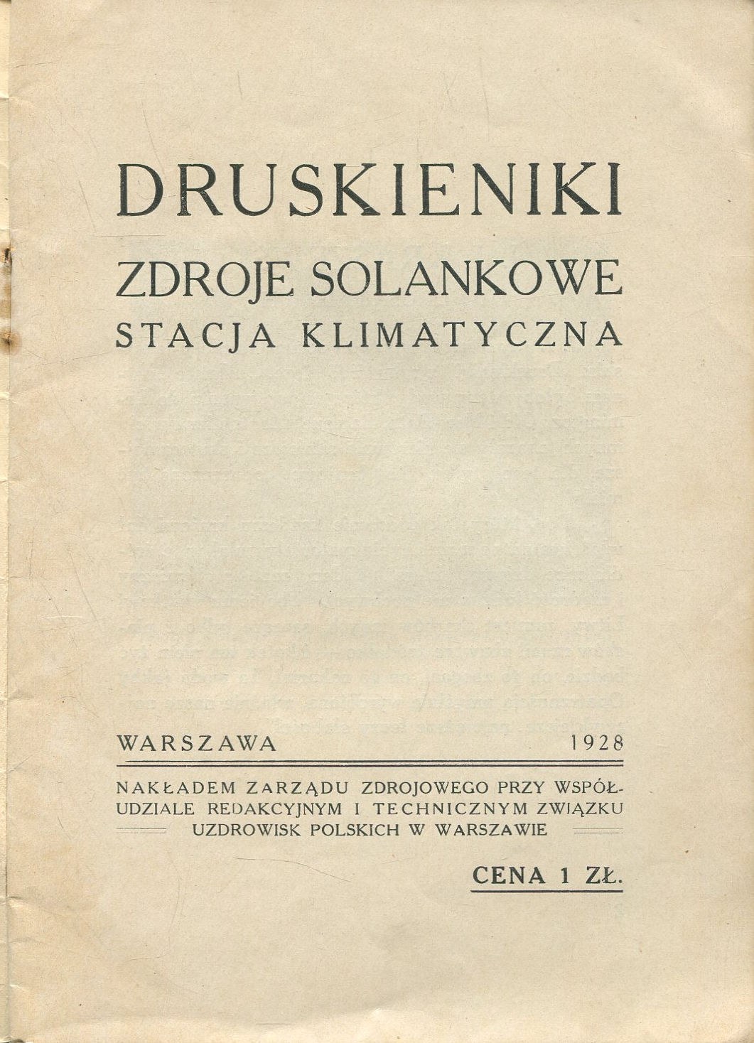Warszawa 1928. Nakładem Zarządu Zdrojowego przy współudziale redakcyjnym i technicznym Związku Uzdrowisk Polskich w Warszawie. 13,5x19 cm, str. 28, czarno-białe fotografie w tekście, okładka miękka. Stan dobry (przybrudzenia okładki).