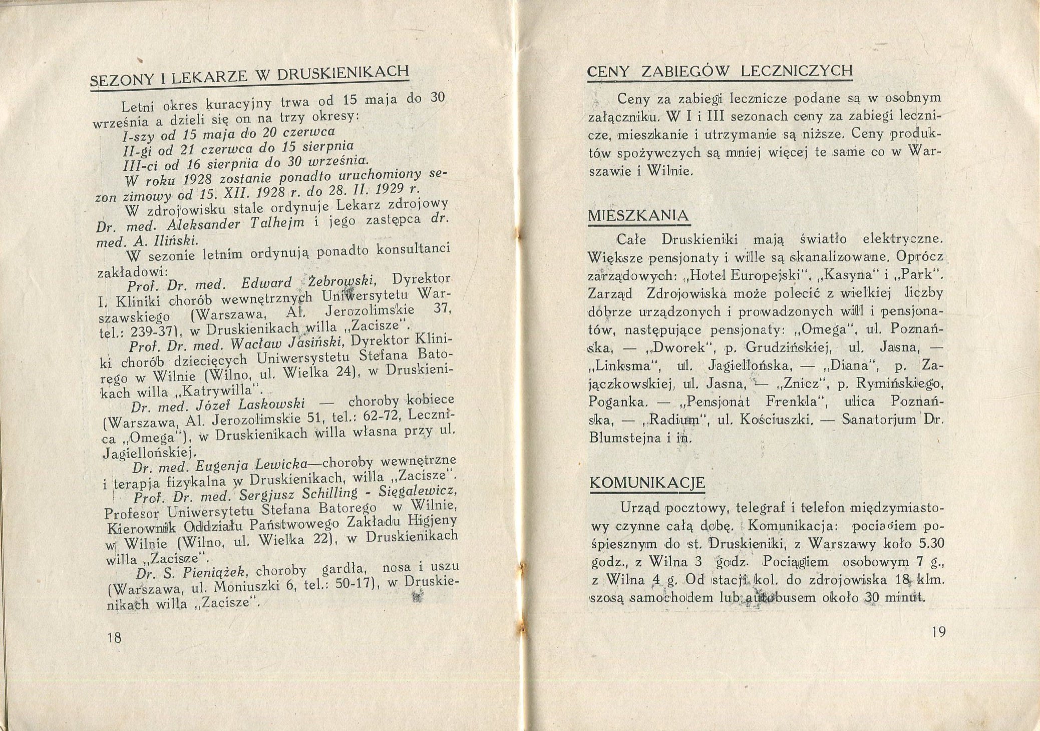 Broszura reklamowa uzdrowiska w Druskienikach. Zawiera m.in. opis położenia i warunków klimatycznych Druskienik, jego zdrojów i urządzeń kąpielowych, opinie znanych lekarzy oraz spis wskazań leczniczych.