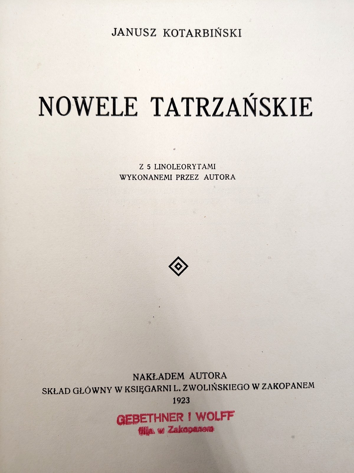 Na stronie tytułowej pieczęć Gebethner i Wolff filia Zakopane.