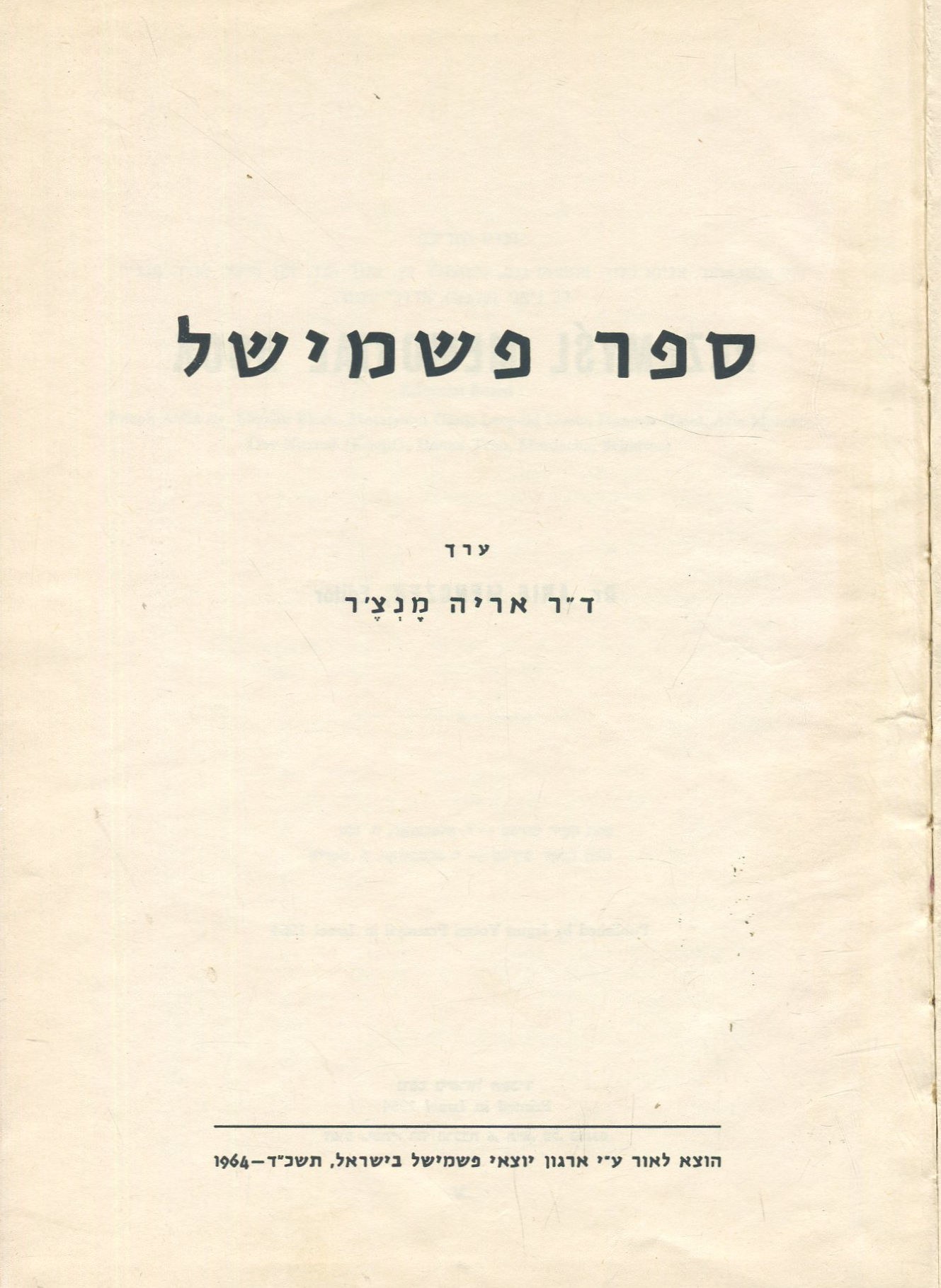 Izrael 1964. Irgun Yotzei Przemyśl in Israel. 17x24,5 cm, str. XVI, 552, czarno-białe fotografie w tekście, twarda płócienna okładka. Stan dobry (delikatne otarcia okładki, niewielkie zaplamienie brzegu bloku).