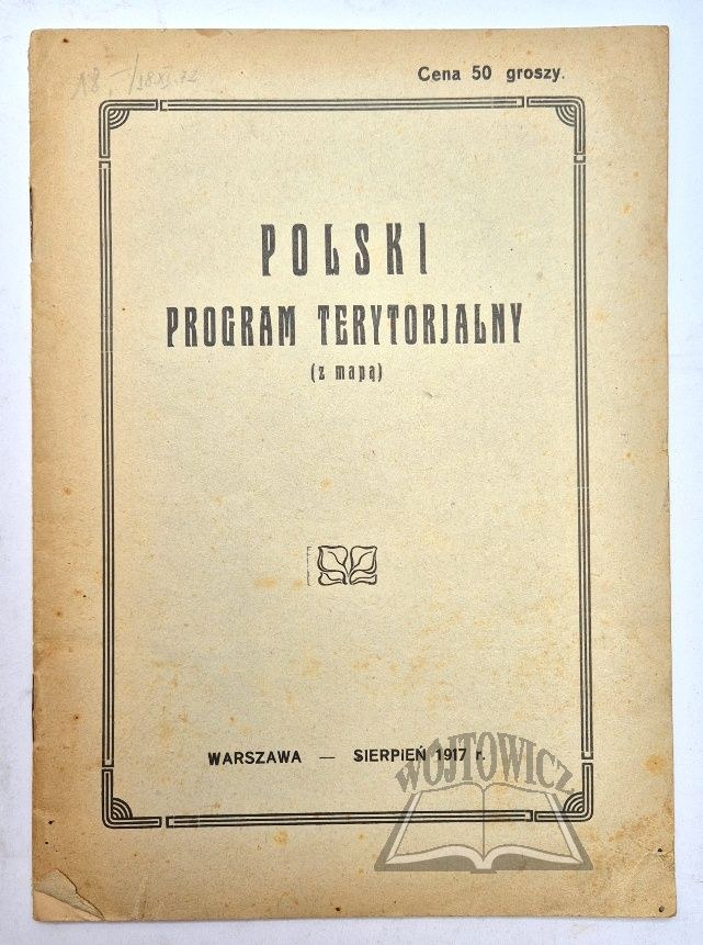 (Z mapą). Warszawa, sierpień 1917. (Brak Wyd.) 8, s. 23, [1], 1 skł. kolor. mapa, okł. brosz. oryg.