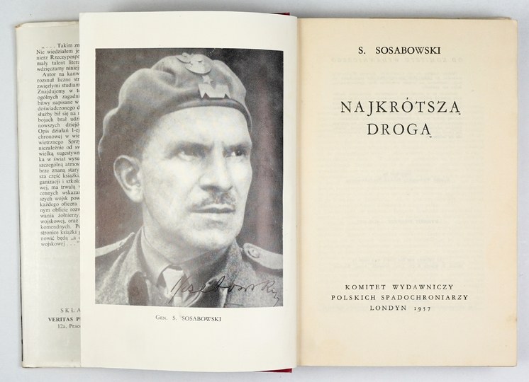 SOSABOWSKI S[tanisław] - Najkrótszą drogą. Londyn 1957. Kom. Wyd. Polskich Spadochroniarzy. 8, s. XXXI, [1], 286, tabl. 9. opr. oryg. pł., obw.