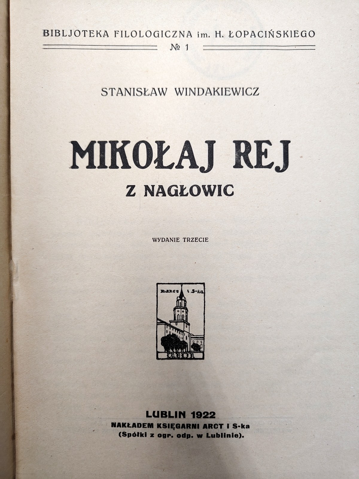 Windakiewicz Stanisław - Mikołaj Rej z Nagłowic, Lublin 1922