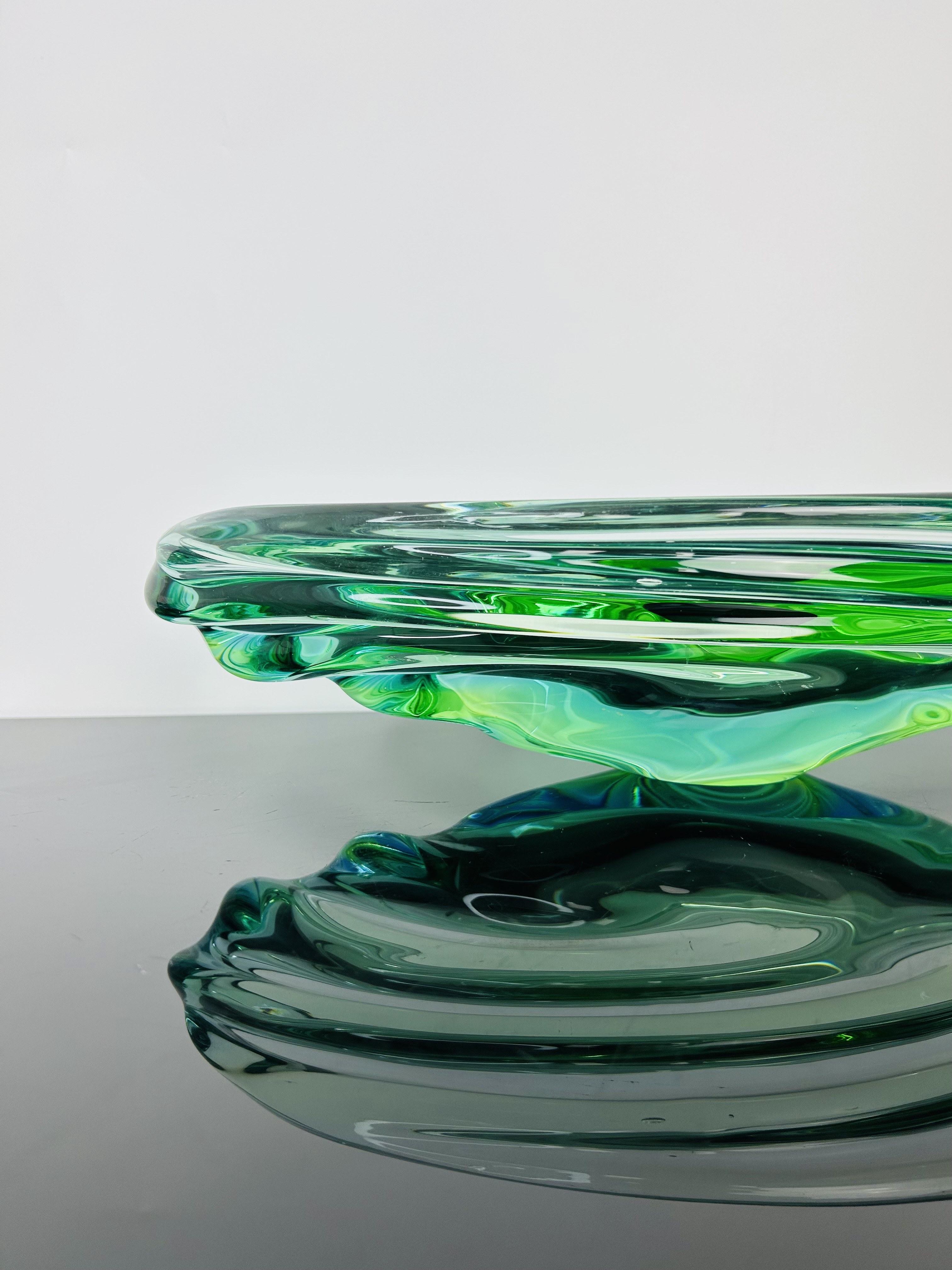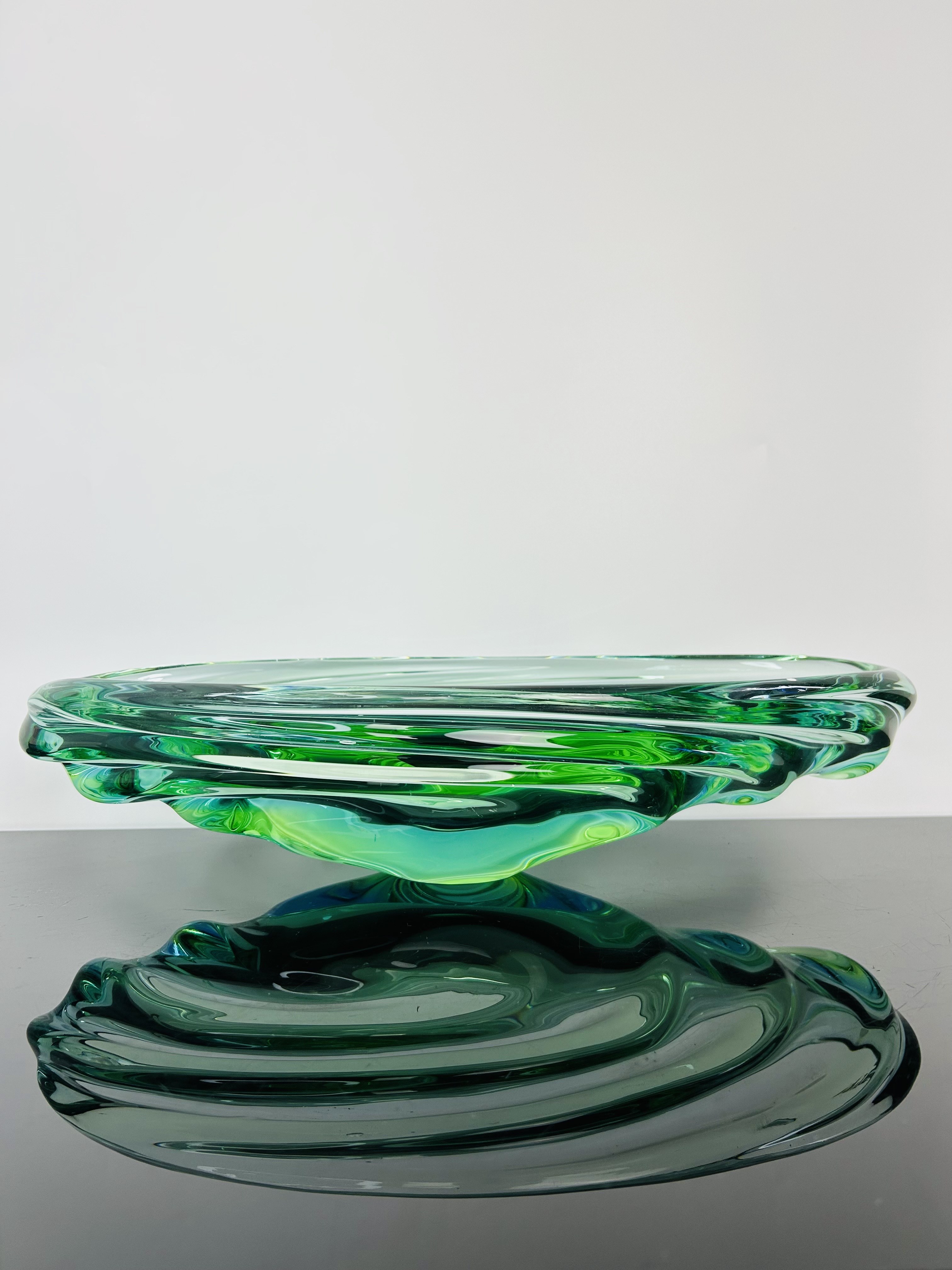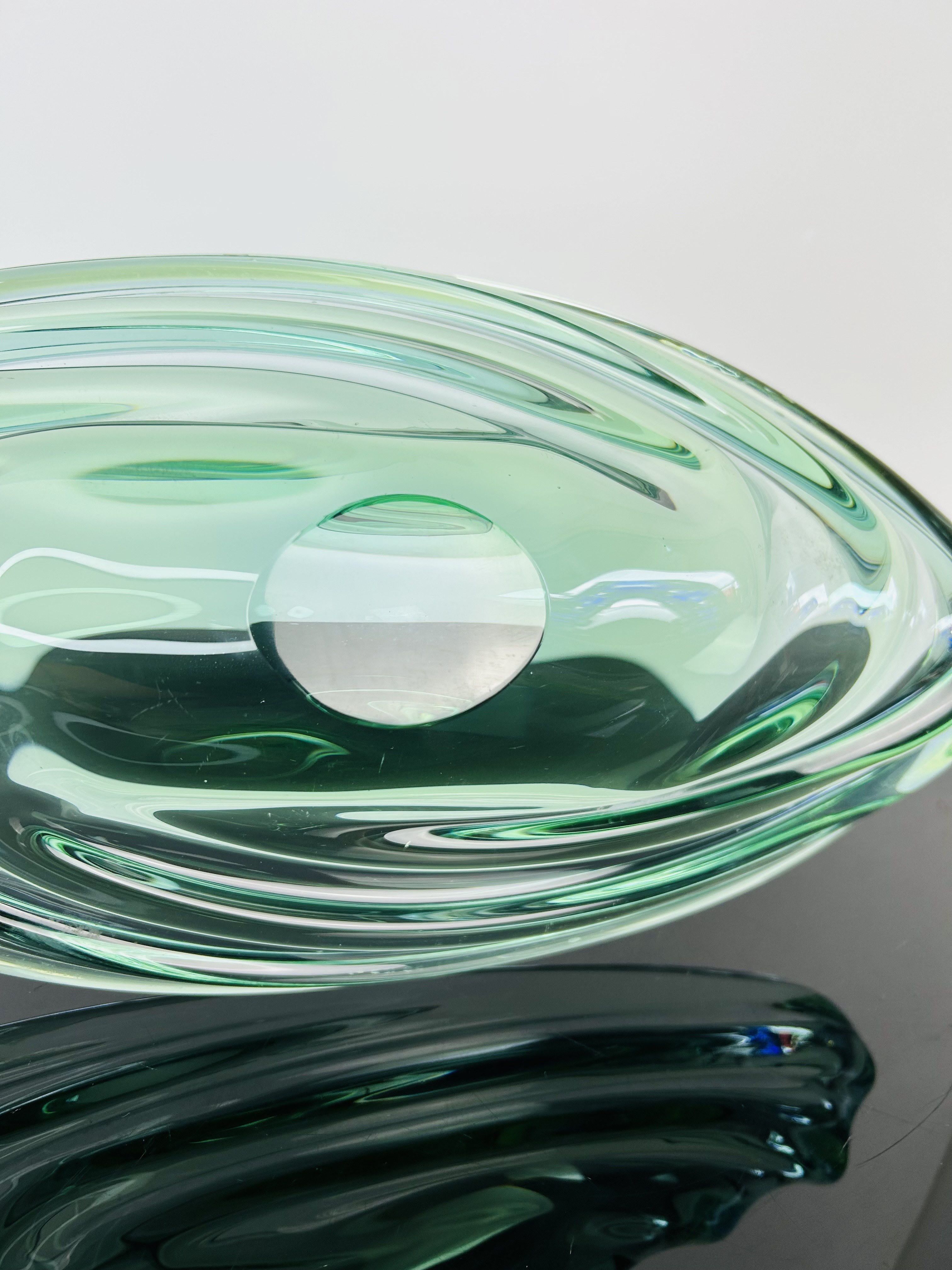 Massive sommerso uranium glass bowl from the Andromeda collection, designed by Jaroslav Beránek for Škrdlovice Glassworks in the 1950s. Width is 43cm. Excellent vintage condition, no chips or cracks.