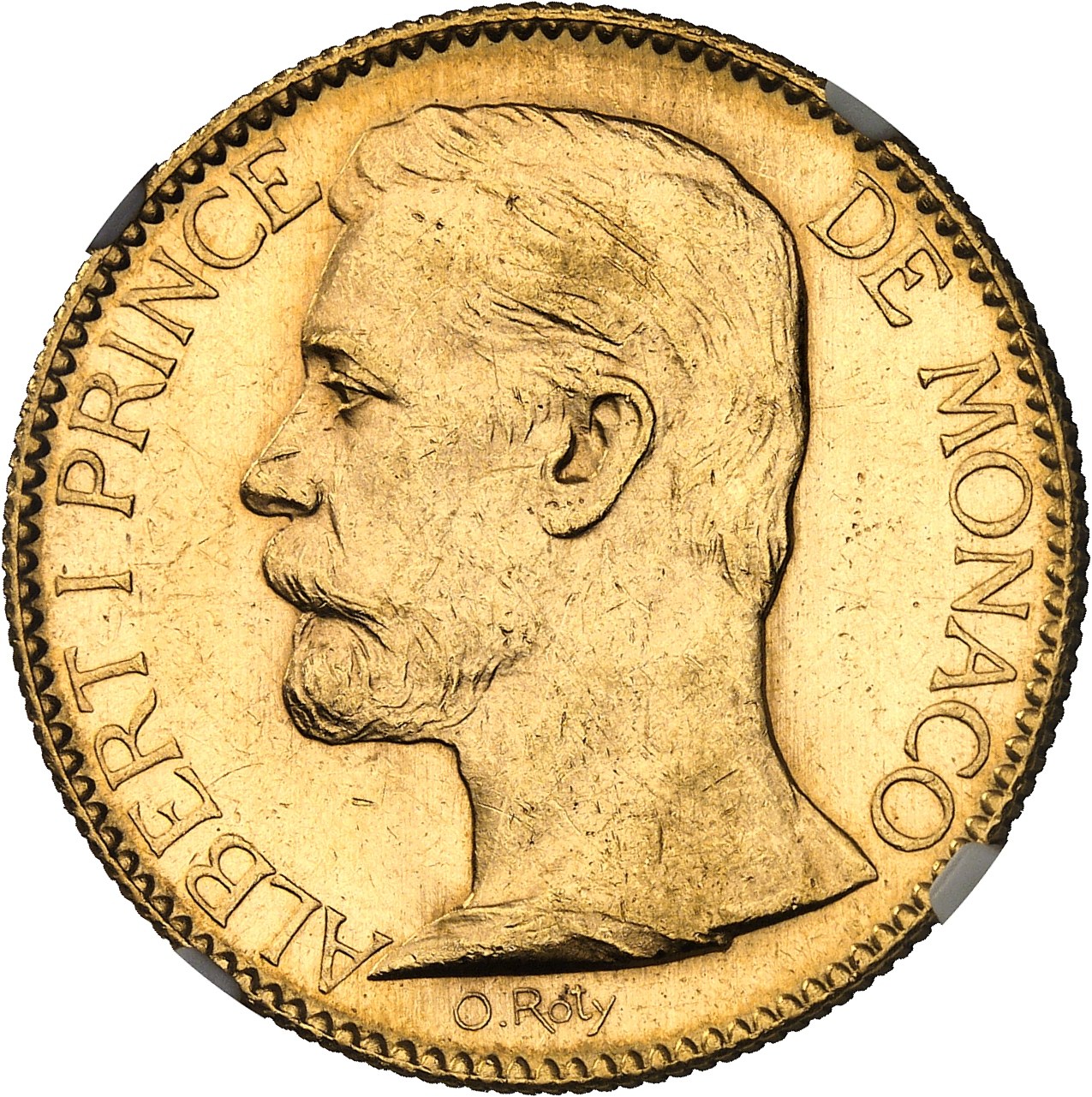 Av. ALBERT I PRINCE DE MONACO. Buste à gauche, au-dessous signature O. ROTY.
