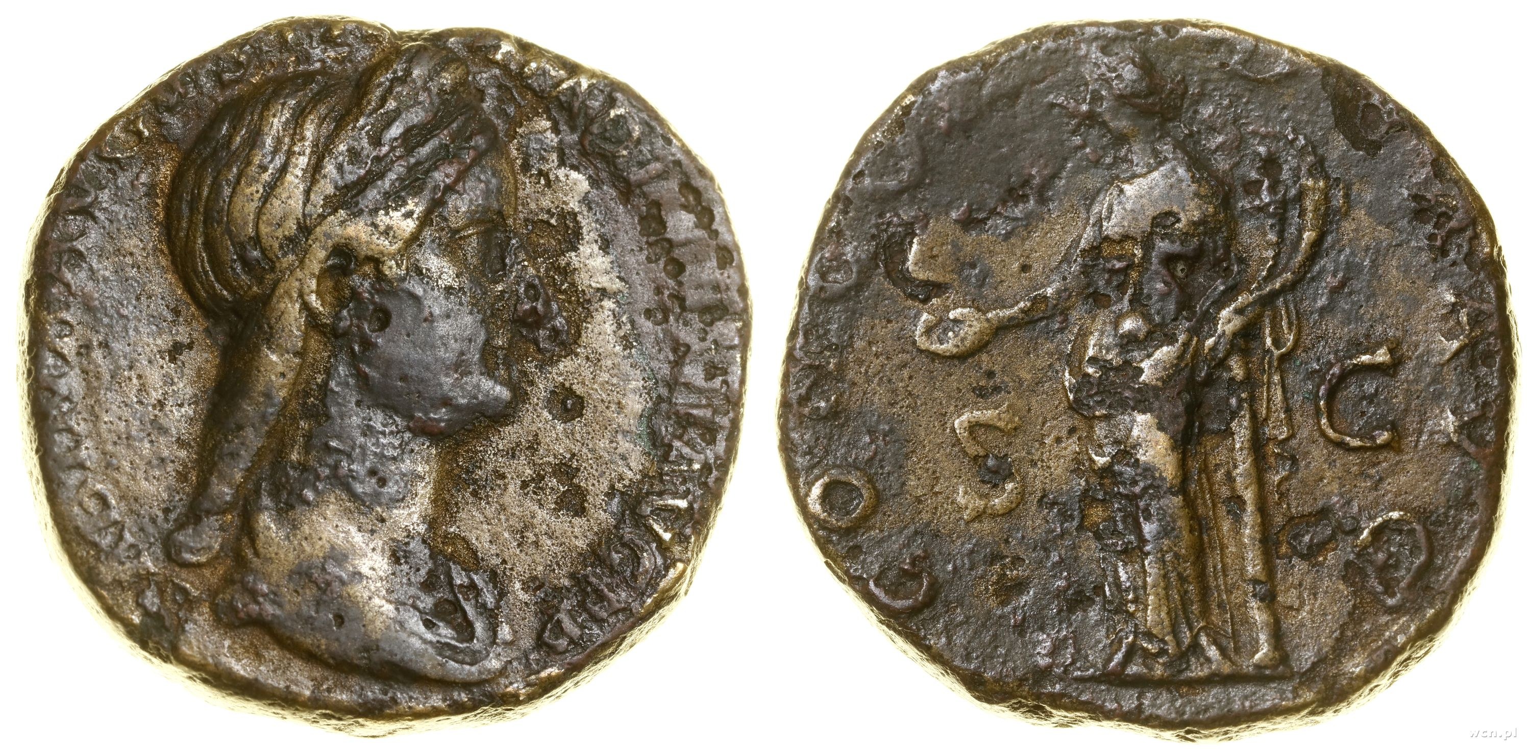 Aw: Popiersie cesarzowej w prawo, SABINA AVGVSTA HADRIANI AVG P P, Rw: Concordia stojąca w lewo, trzymająca paterę i podwójny róg obfitości, CONCORDIA AVG