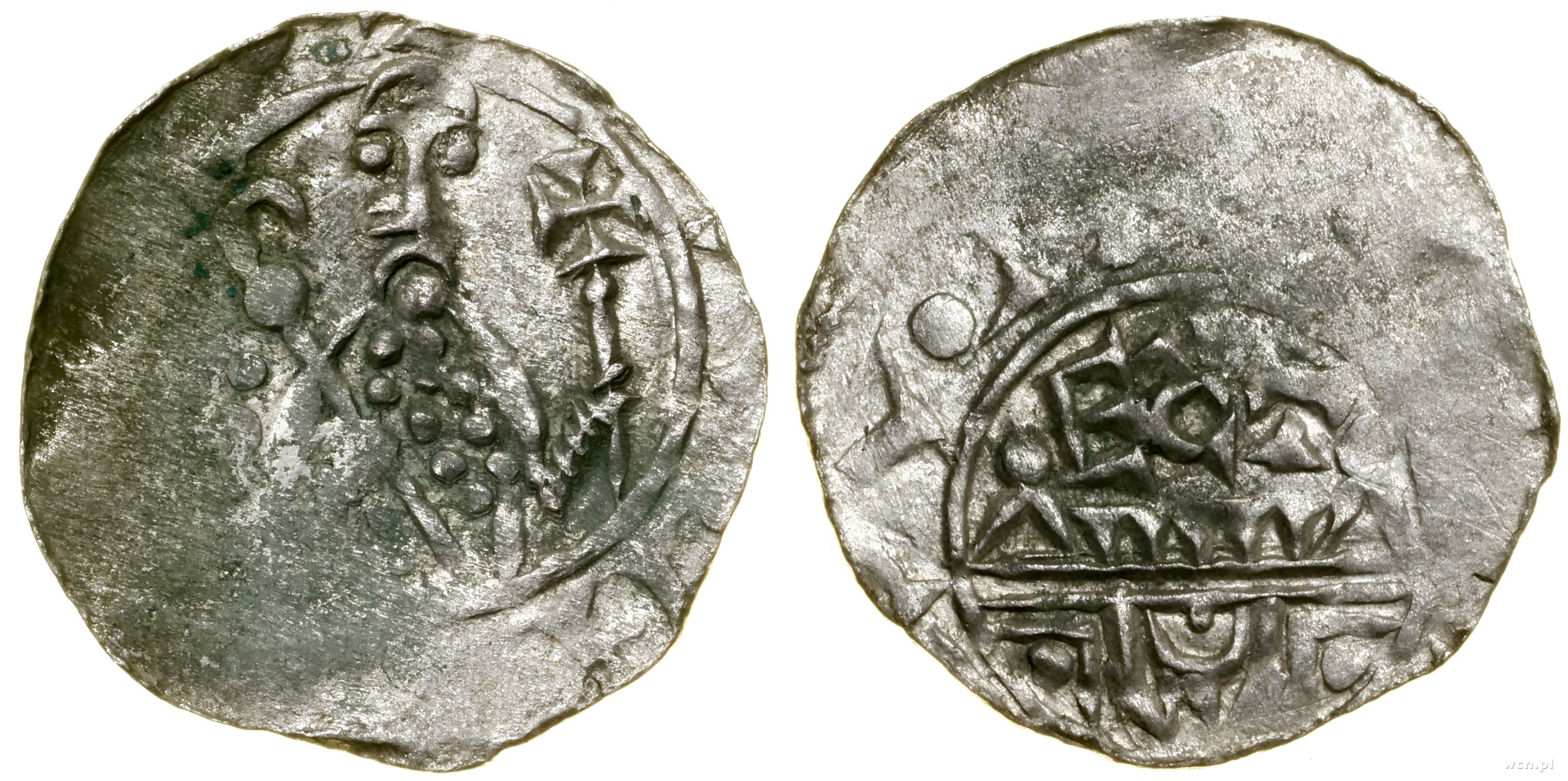 Aw: Półpostać na wprost z pastorałem i laską krzyżową, legenda, Rw: Mur miejski z blankami, nad nim ECT, legenda