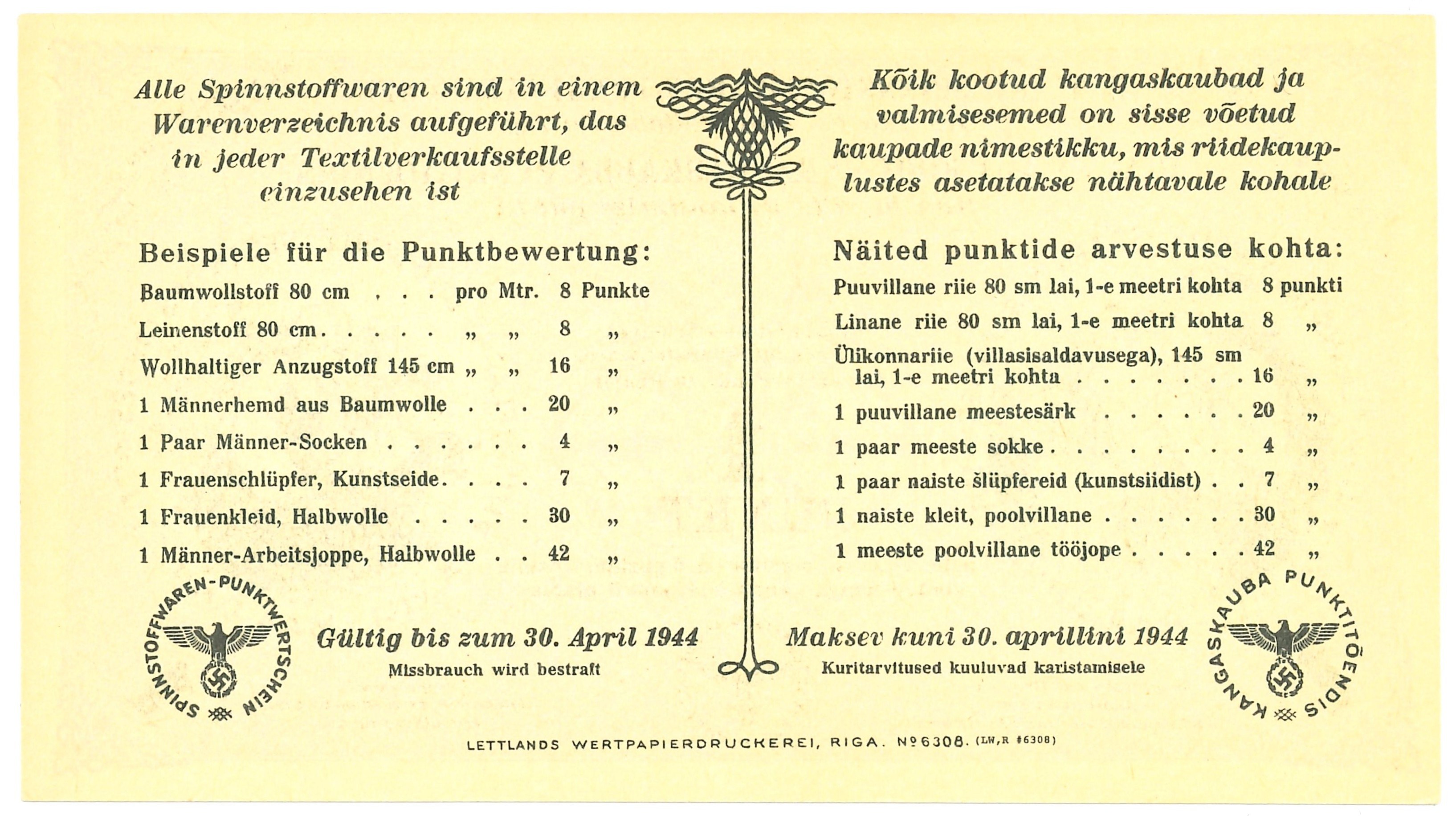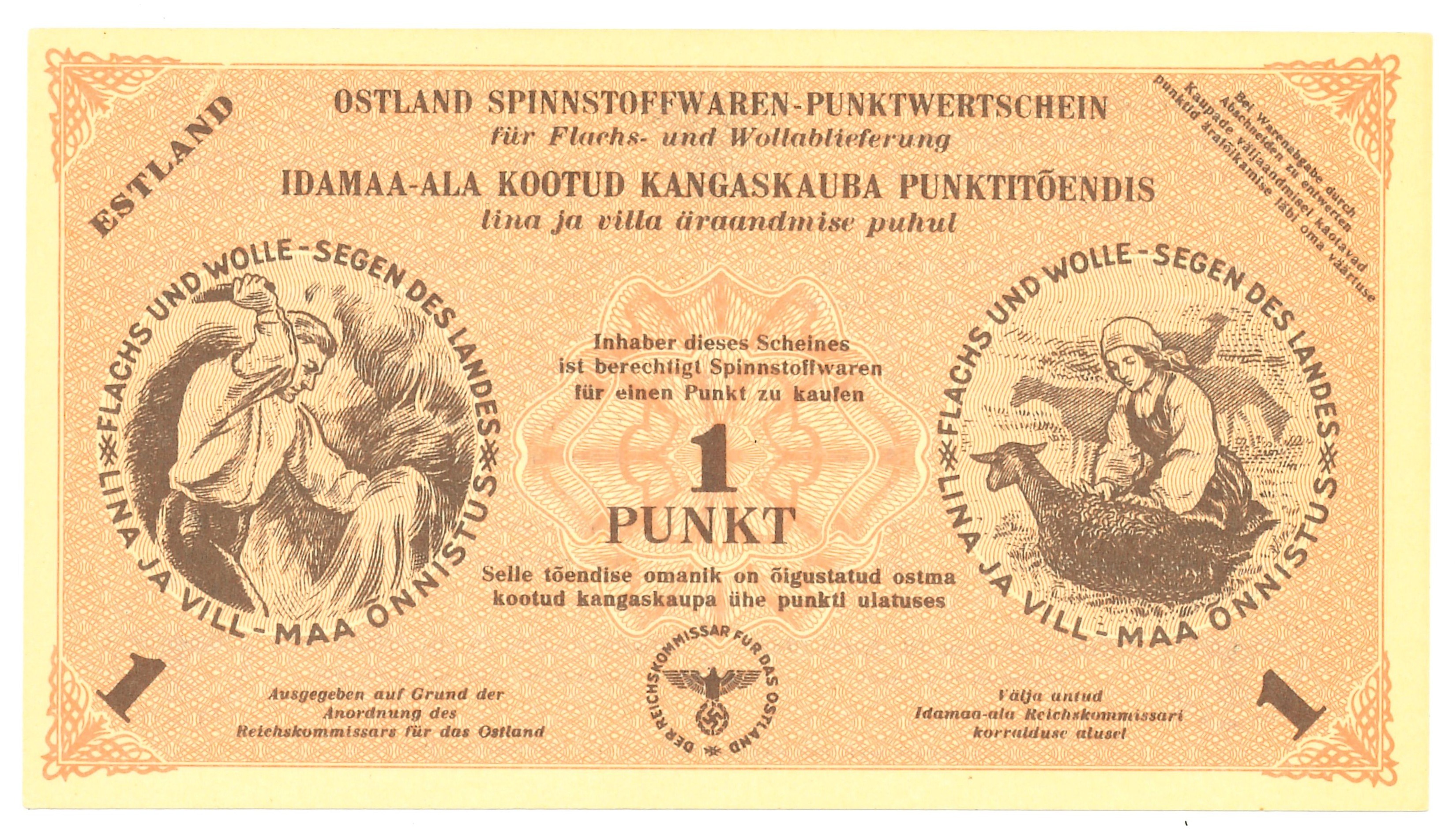 Talon na len i wełnę z okresu drugo-wojennej okupacji niemieckiej terenów Estonii.