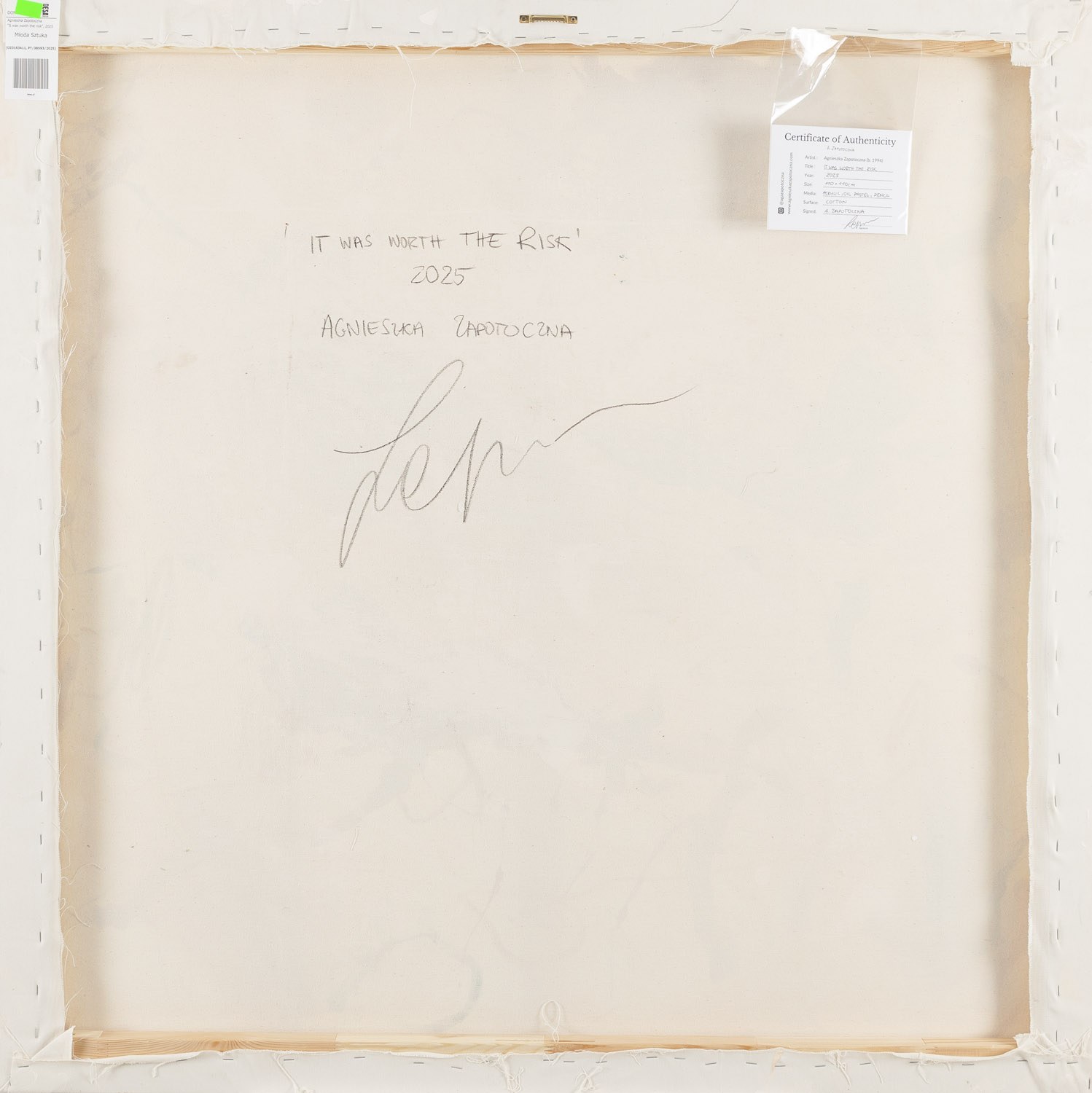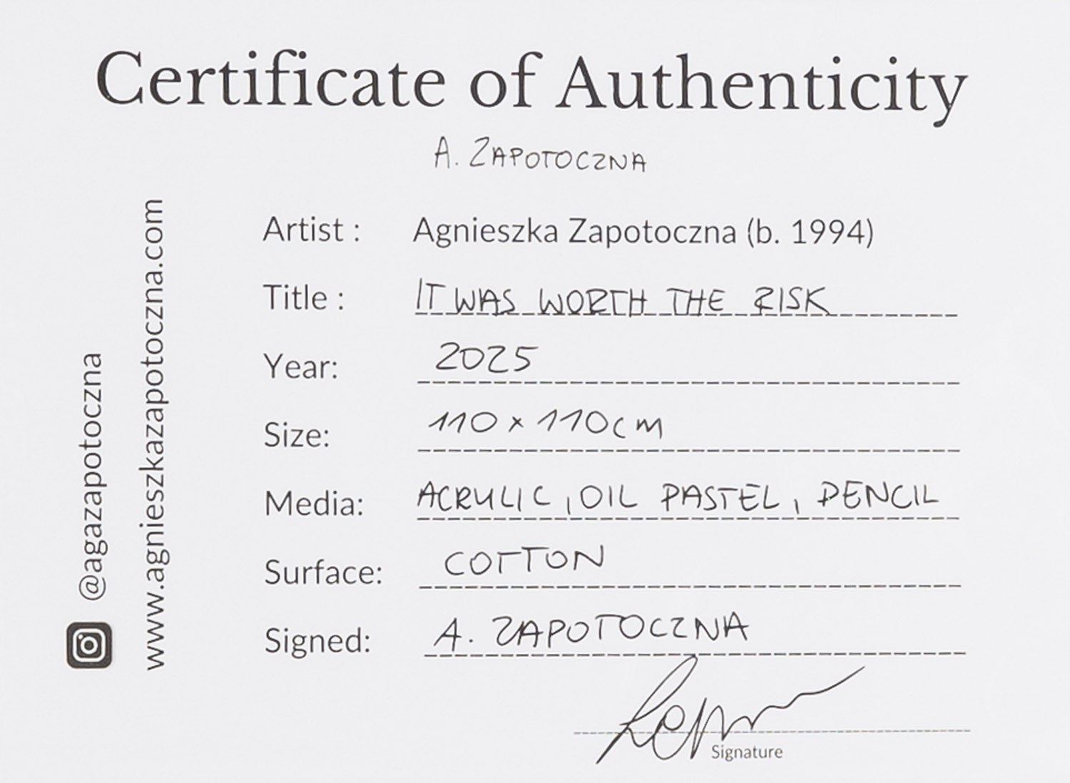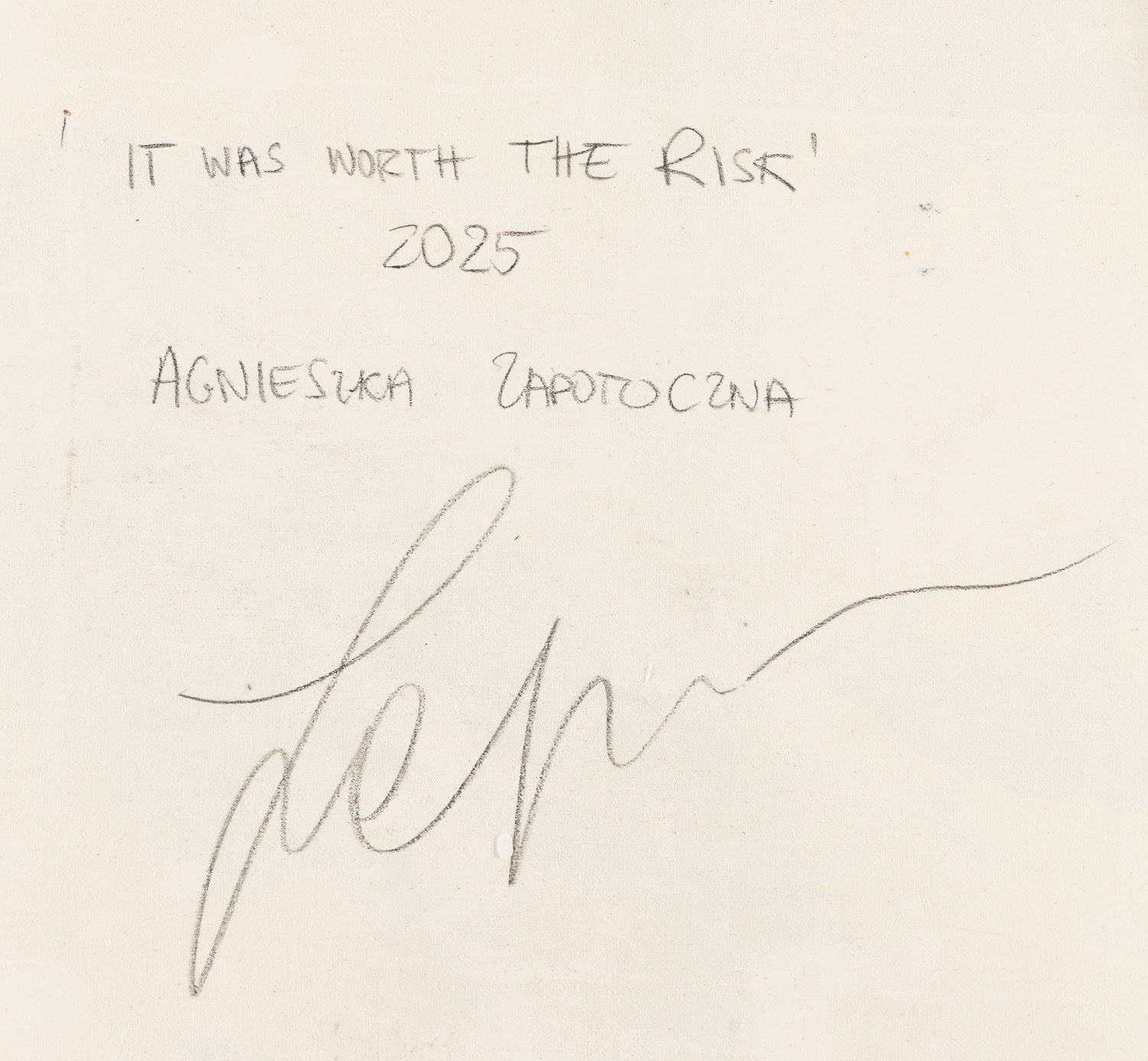 sygnowany, datowany i opisany na odwrociu: ''IT WAS WORTH THE RISK' | 2025 | AGNIESZKA ZAPOTOCZNA | [sygnatura artystki]'