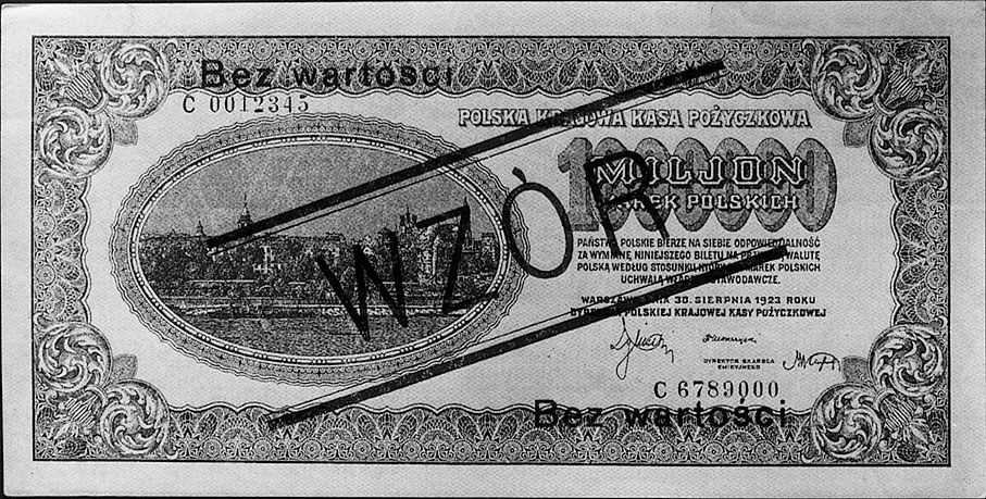 1.000.000 marek polskich 30.08.1923, C 0012345 / 678900...