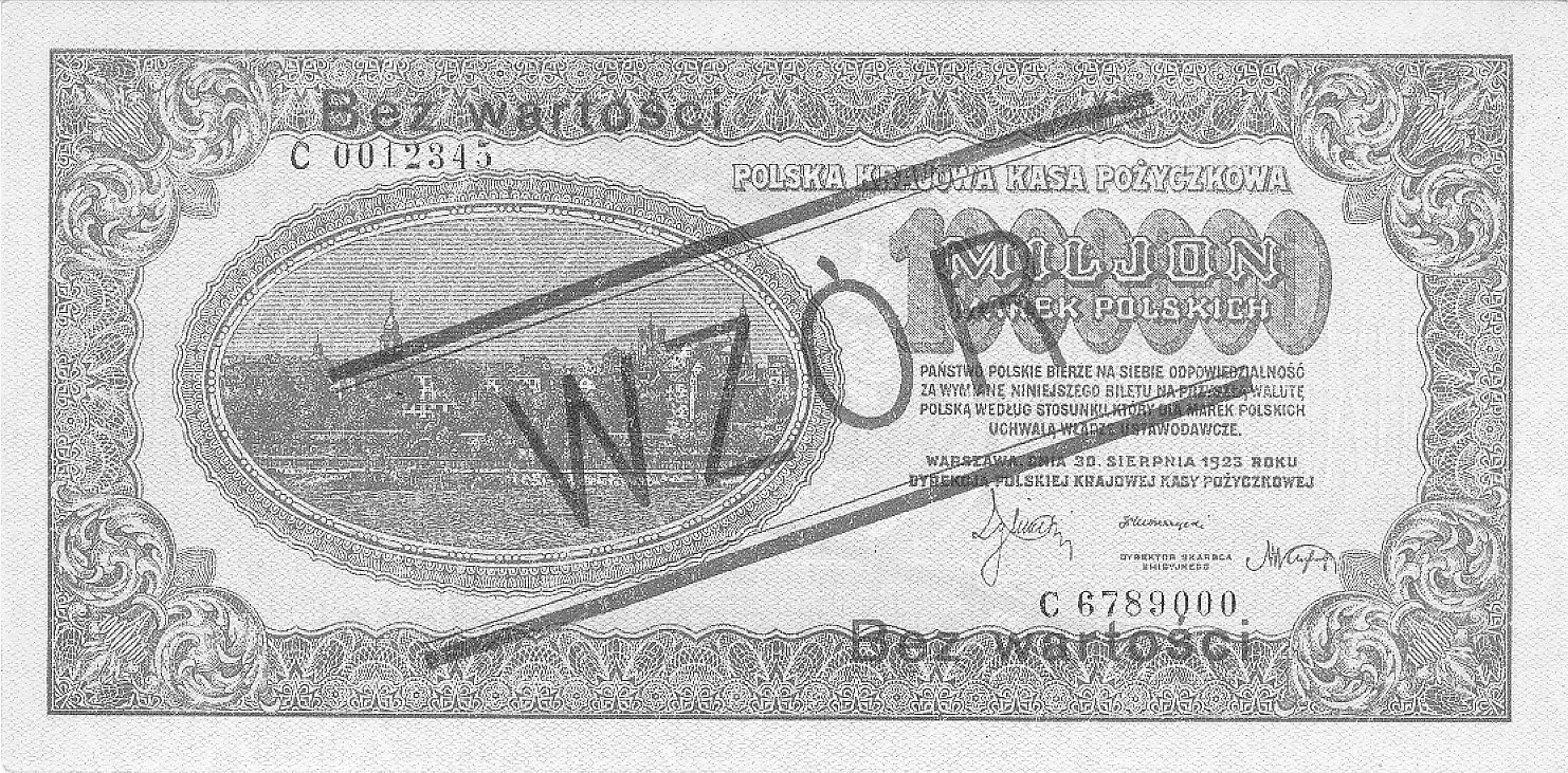 Rzeczpospolita Polska 1918-1939, 1.000.000 marek polskich 30.08.1923, Pick 37, seria C 0012345 / 6789000, wzór bez perforacji