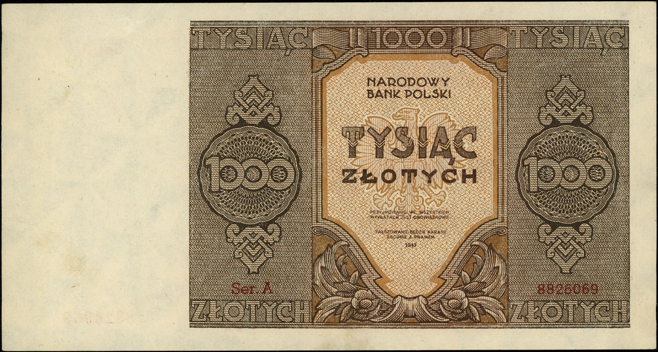 1.000 złotych 1945, seria A, Miłczak 120a, Lucow 1151 (...