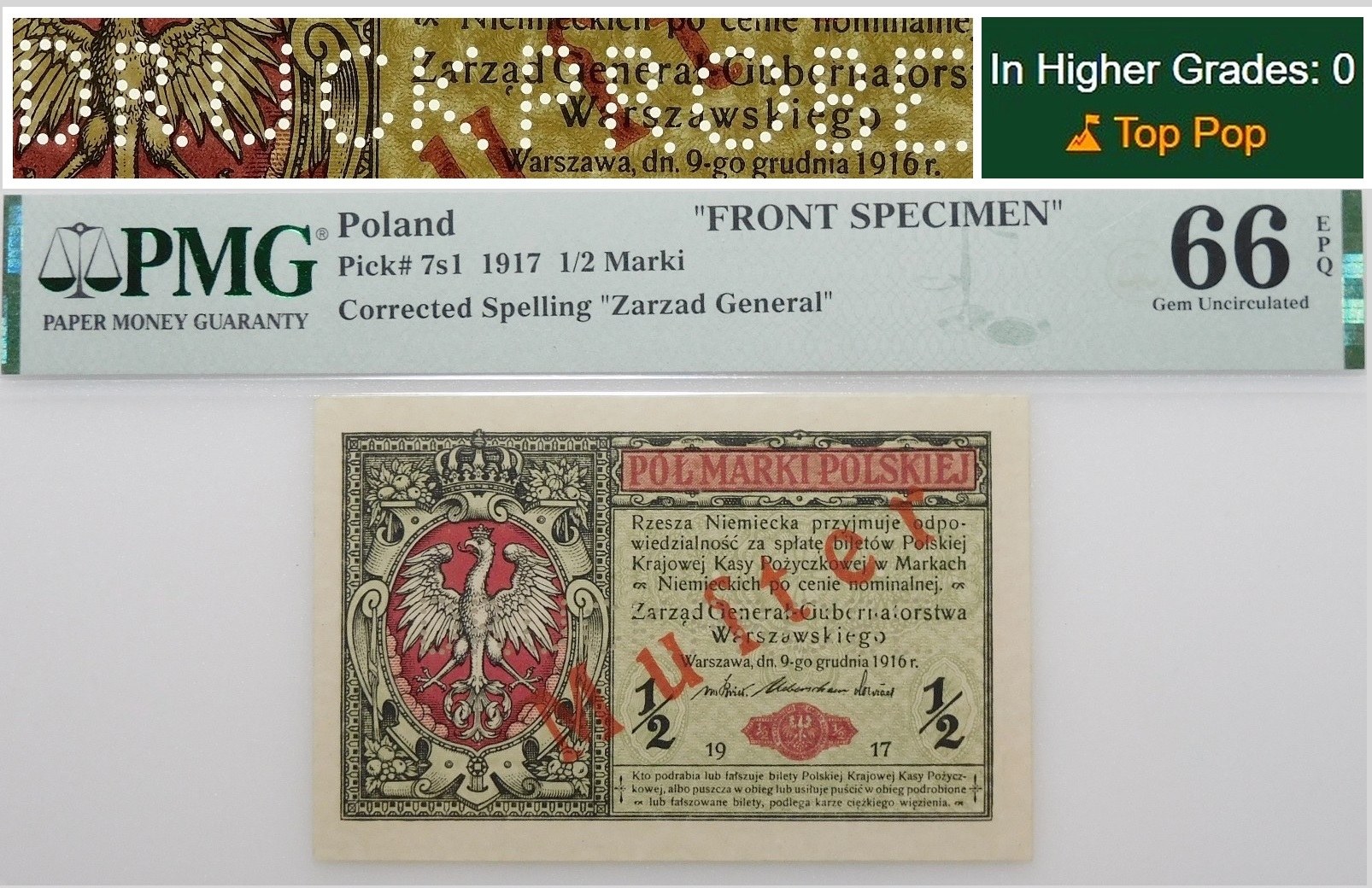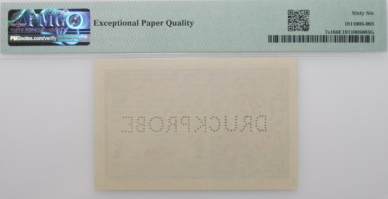 Wyjątkowo atrakcyjny egzemplarz, potwierdzony wysoką notą gradingową PMG, w tym typie jest to jest to MAX NOTA tego banknotu w rejestrze PMG.