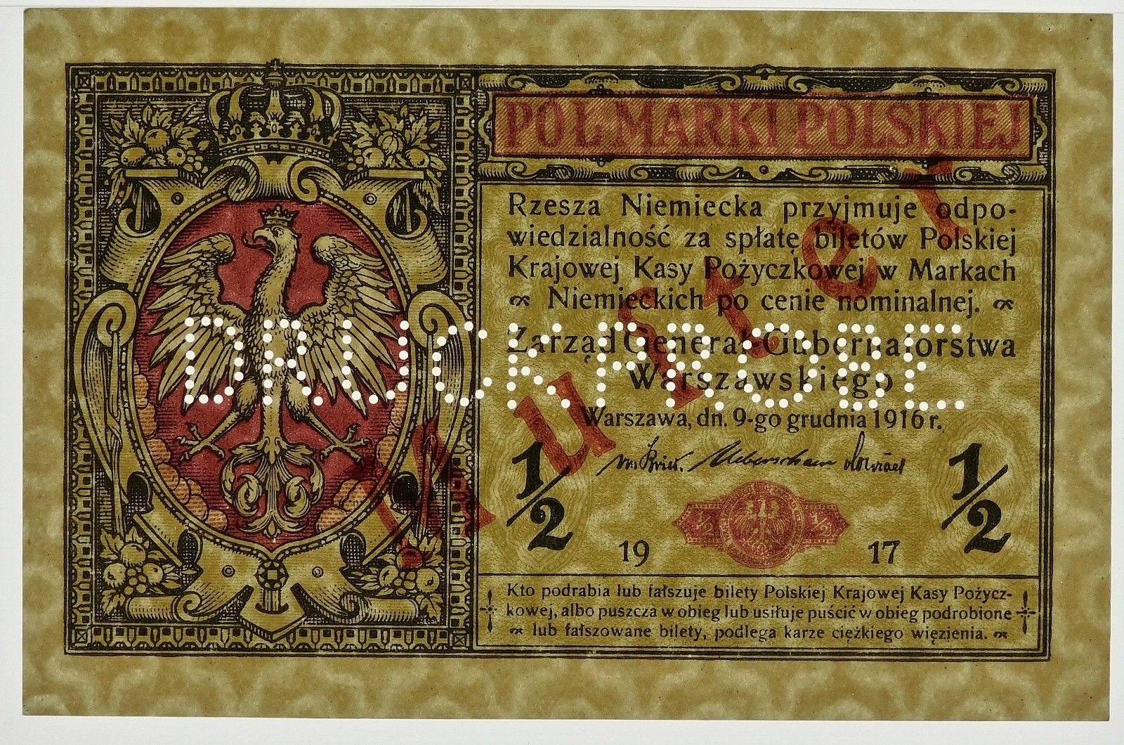 Banknot 1/2 marki polskiej 1916 WZÓR (MUSTER)