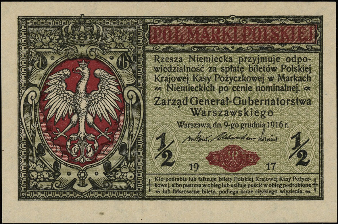 Generalne Gubernatorstwo Warszawskie 1915-1918, 1/2 marki polskiej 9.12.1916, \Generał, seria B