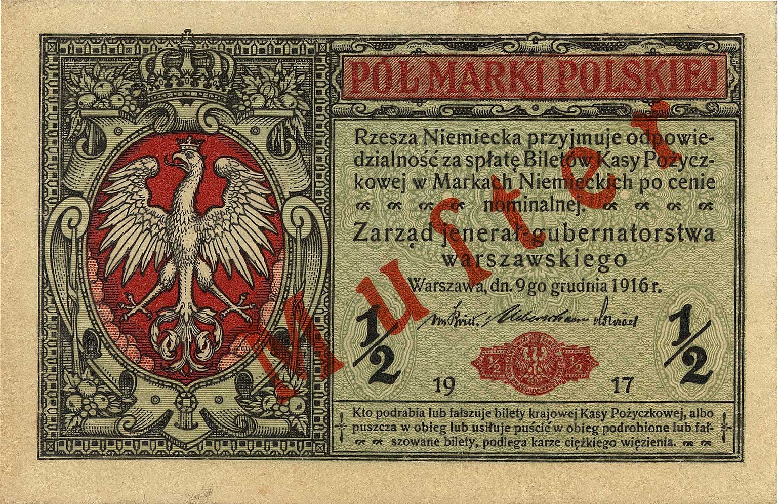 Generalne Gubernatorstwo Warszawskie 1915-1918, 1/2 marki polskiej 9.12.1916, \jenerał, MUSTER