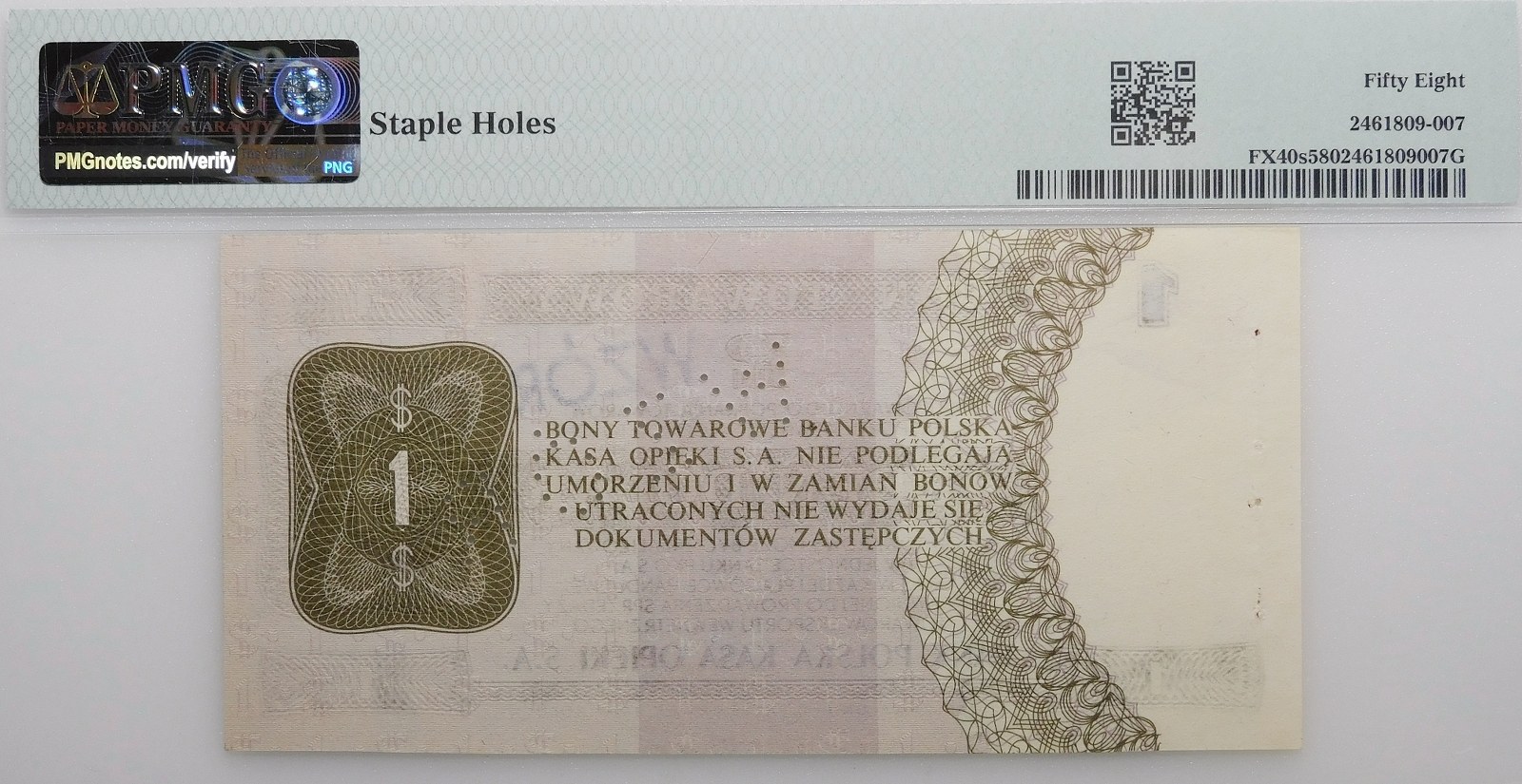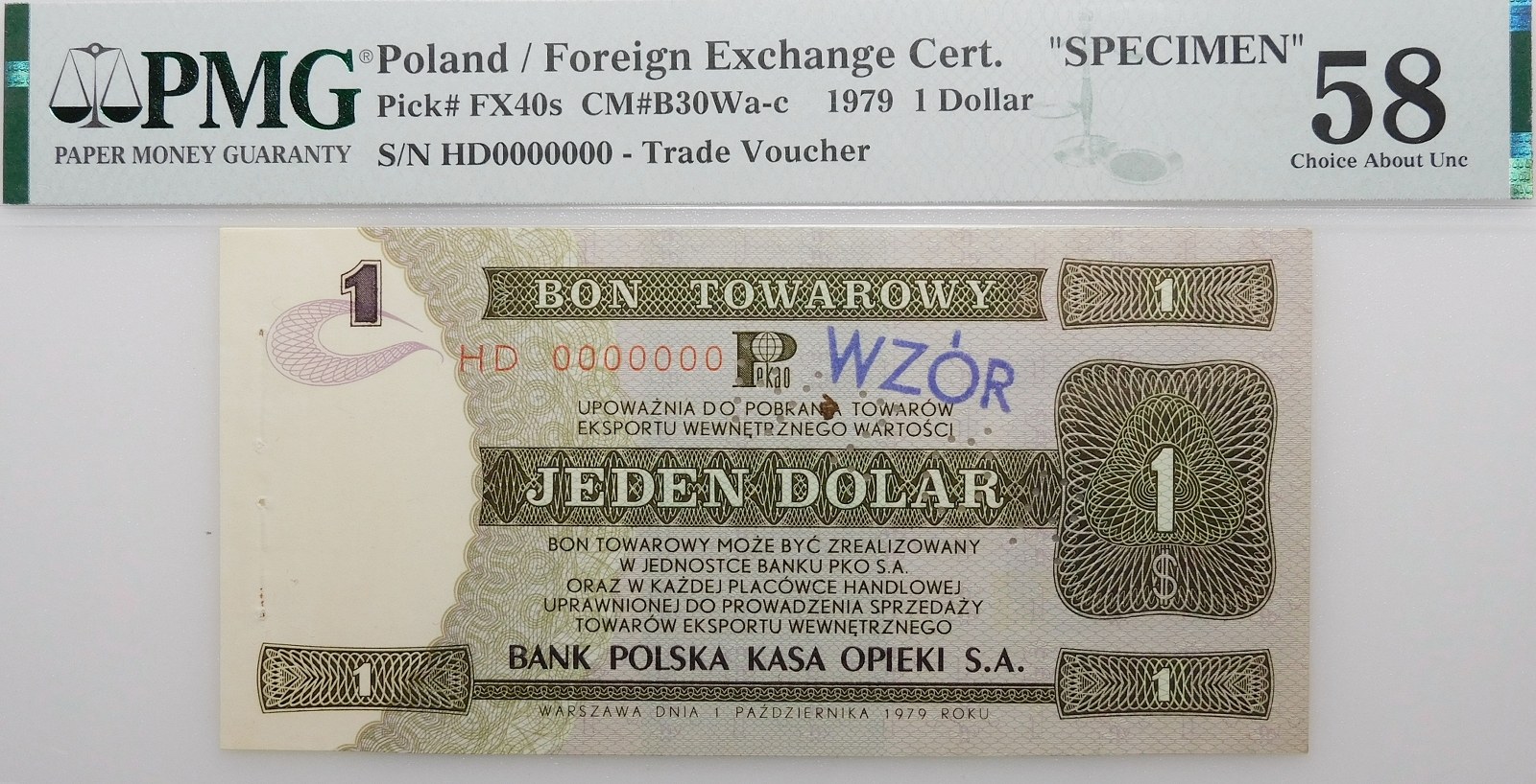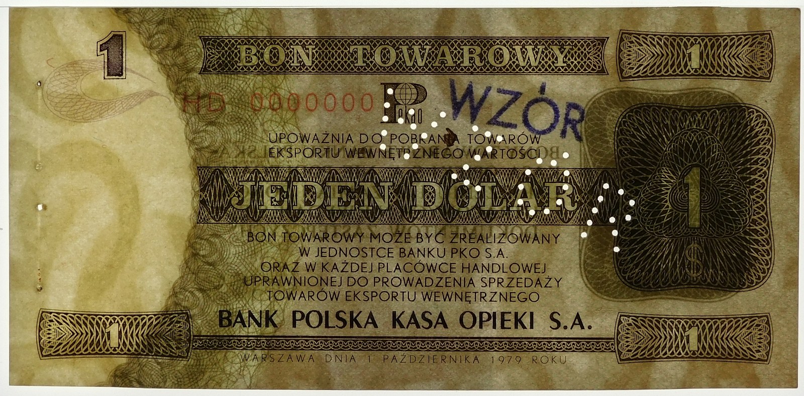 Bon PeKaO o nominale 1 dolara 1979 WZÓR, ser. HD - numeracja zerowa: 0000000