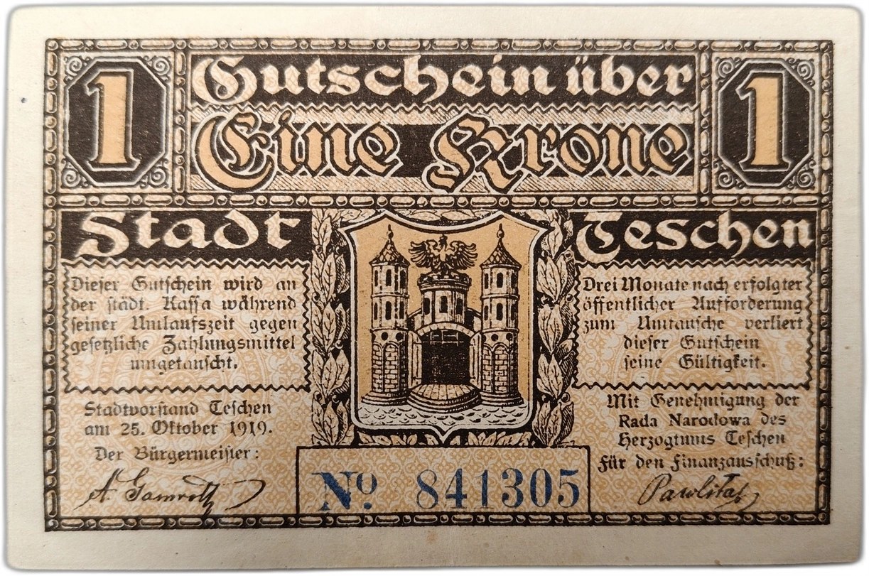 1 Korona - Cieszyn - asygnata kasowa, 1919 rok [ notgeld ]