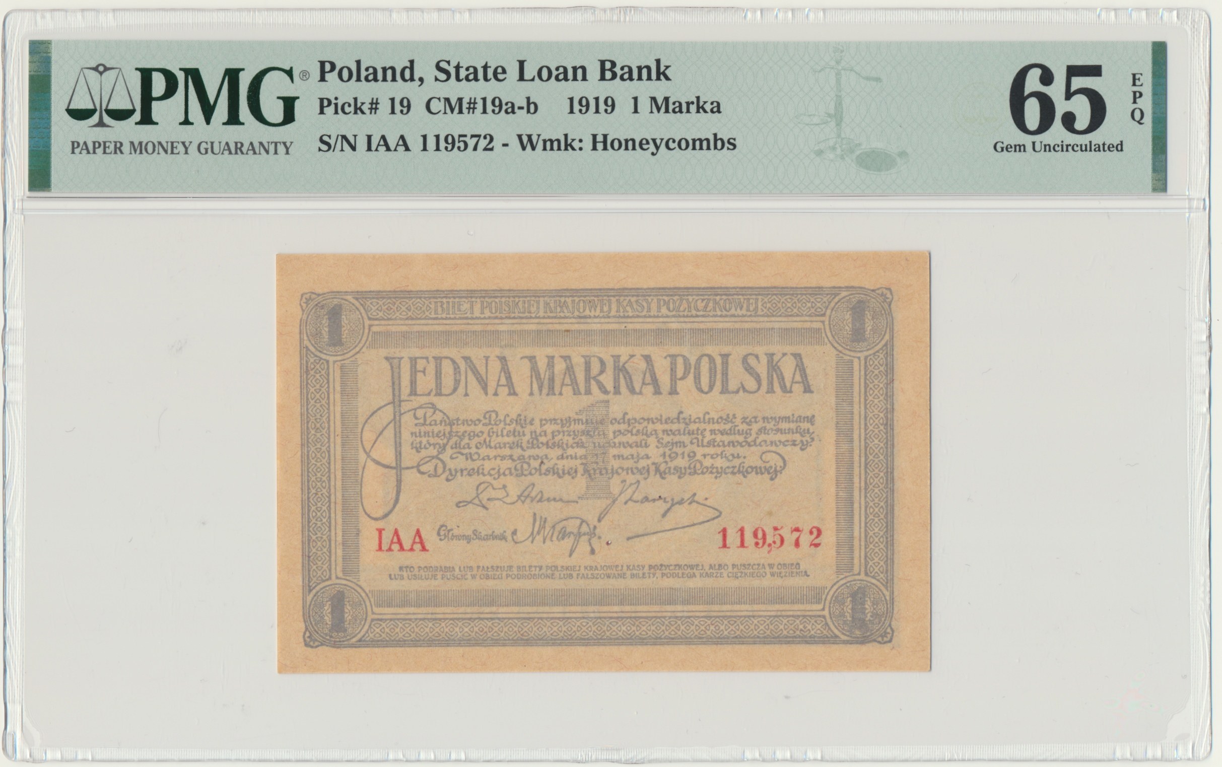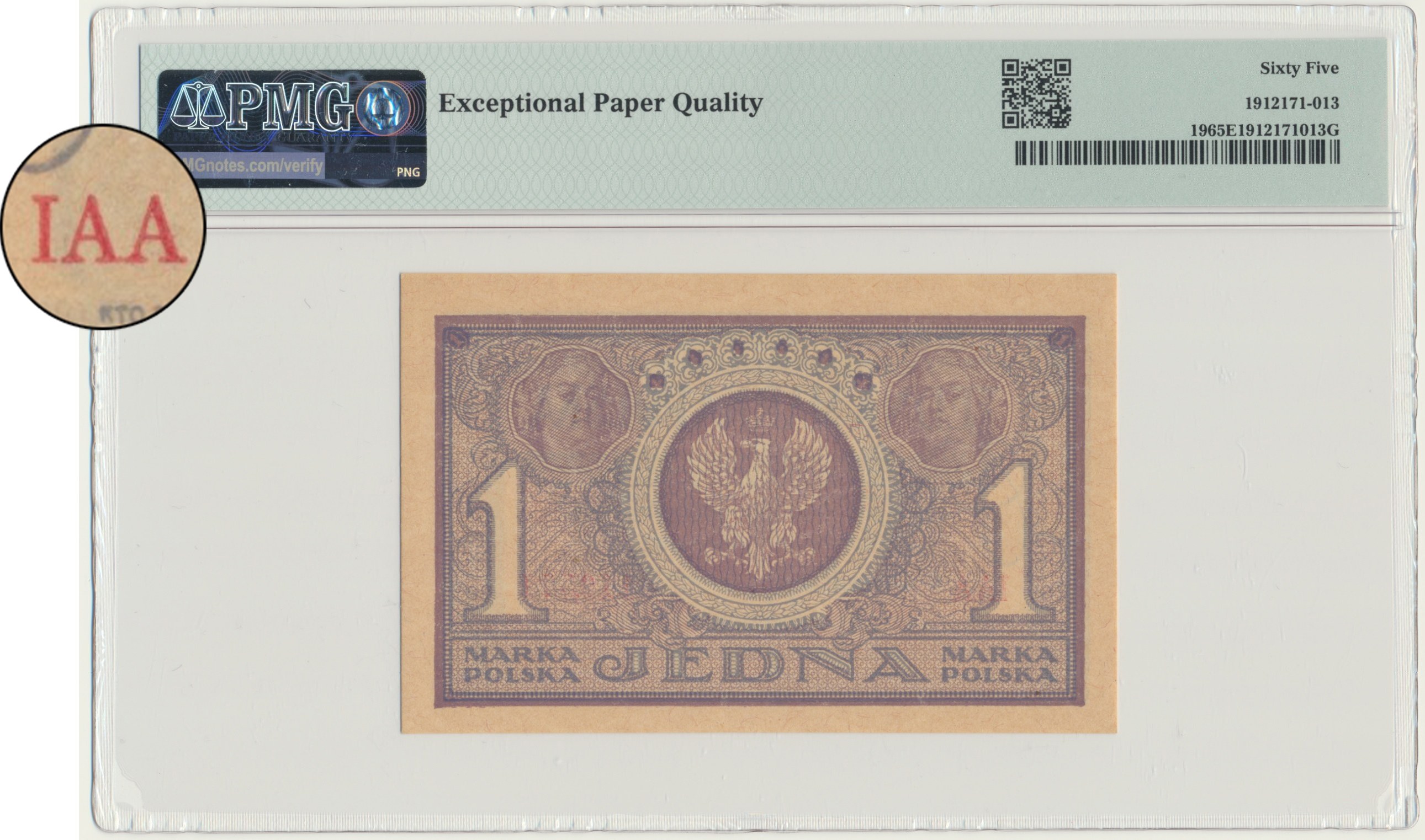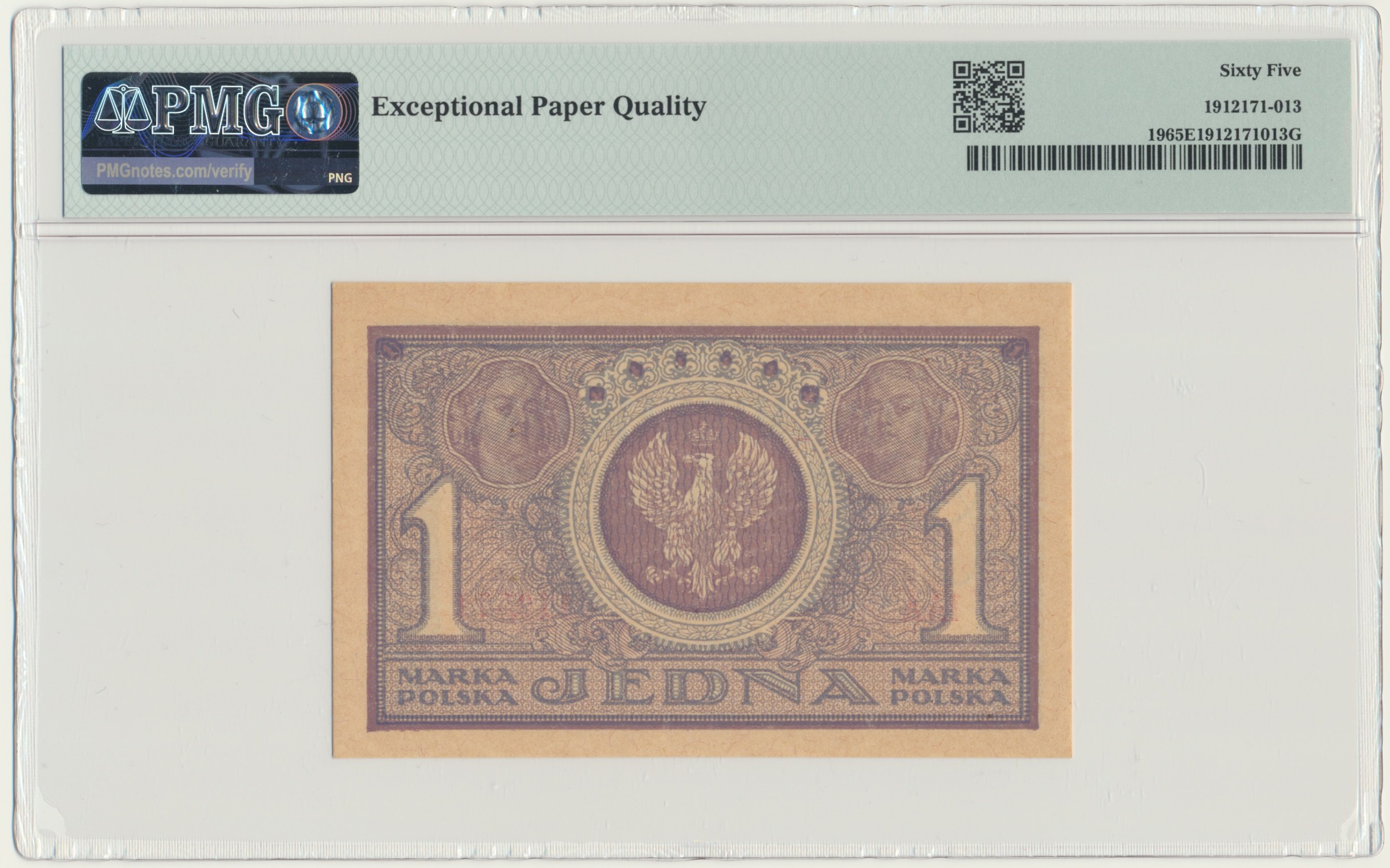 Banknot opatrzony certyfikatem PMG z wysoką oceną PMG 65 EPQ.