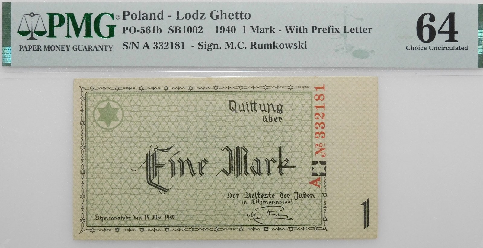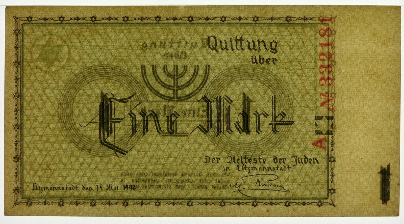 Bon 1 marka 1940 getta łódzkiego