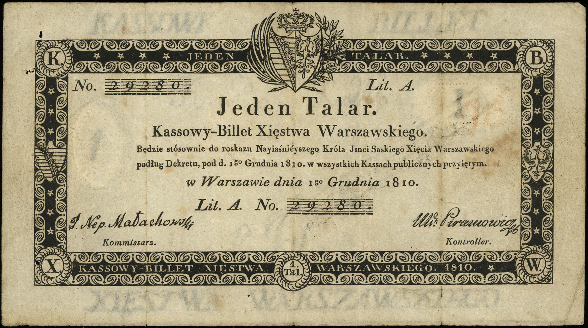 1 talar 1.12.1810, podpis J. Nep. Małachowski, stempel ...