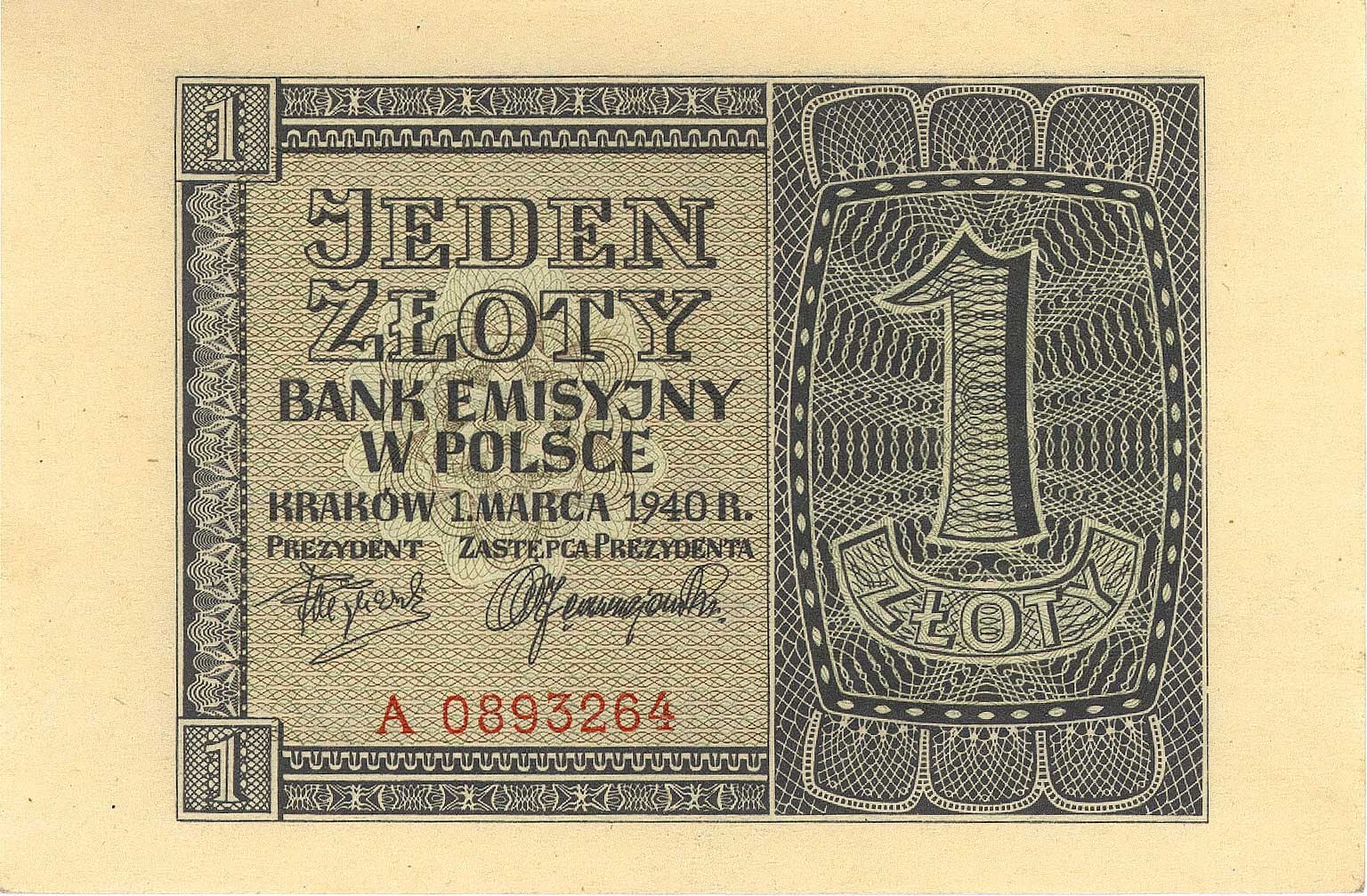 Generalna Gubernia 1940-1945, 1 złoty 1.03.1940, seria A, Miłczak 91