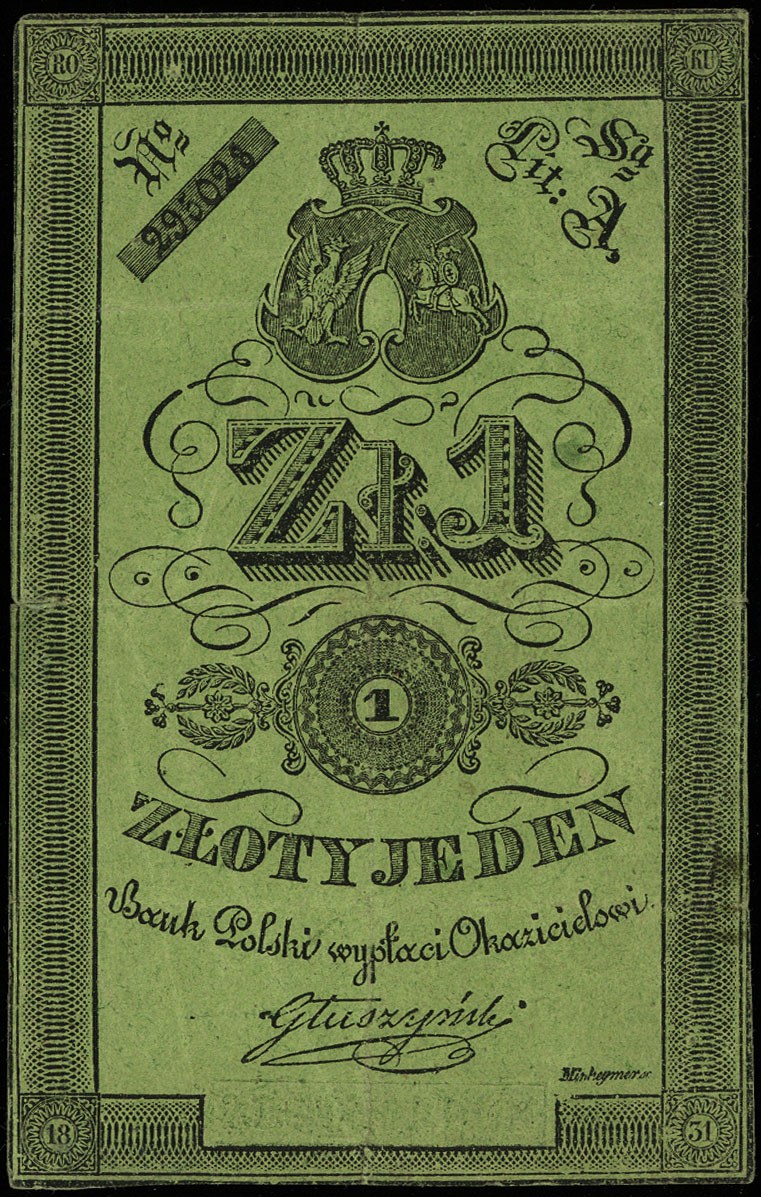1 złoty 1831, podpis: Głuszyński, papier gruby zielony,...