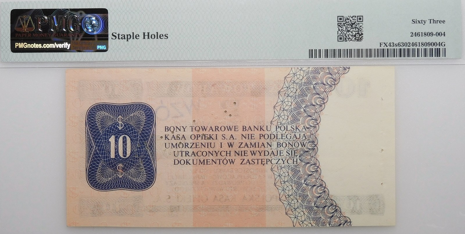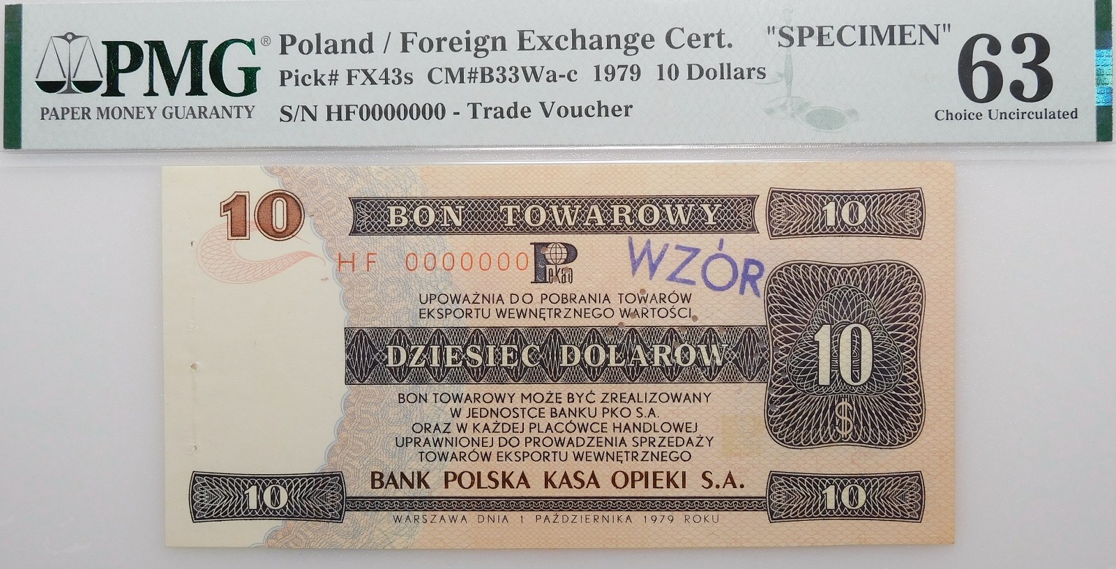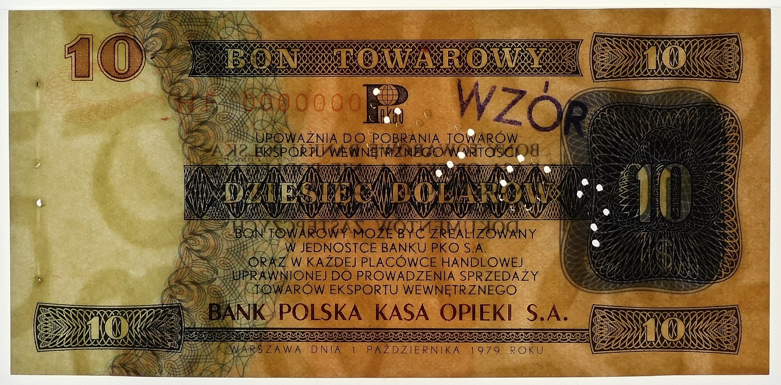 Bon PeKaO o nominale 10 dolarów 1979 WZÓR, ser. HF - numeracja zerowa: 0000000