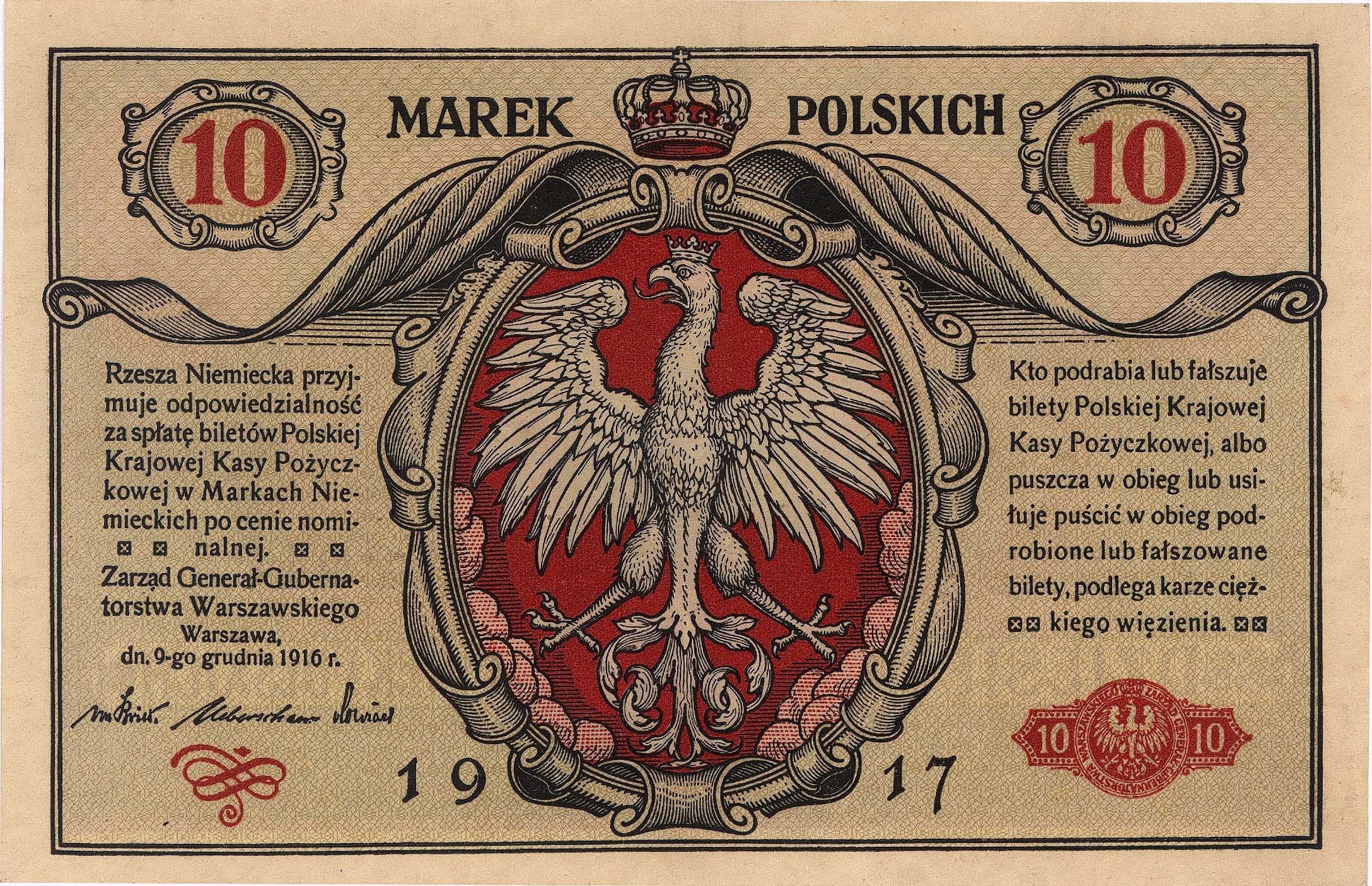 Generalne Gubernatorstwo Warszawskie 1915-1918, 10 marek polskich 9.12.1916, \Generał, \"biletów, Miłczak 13,"I,1