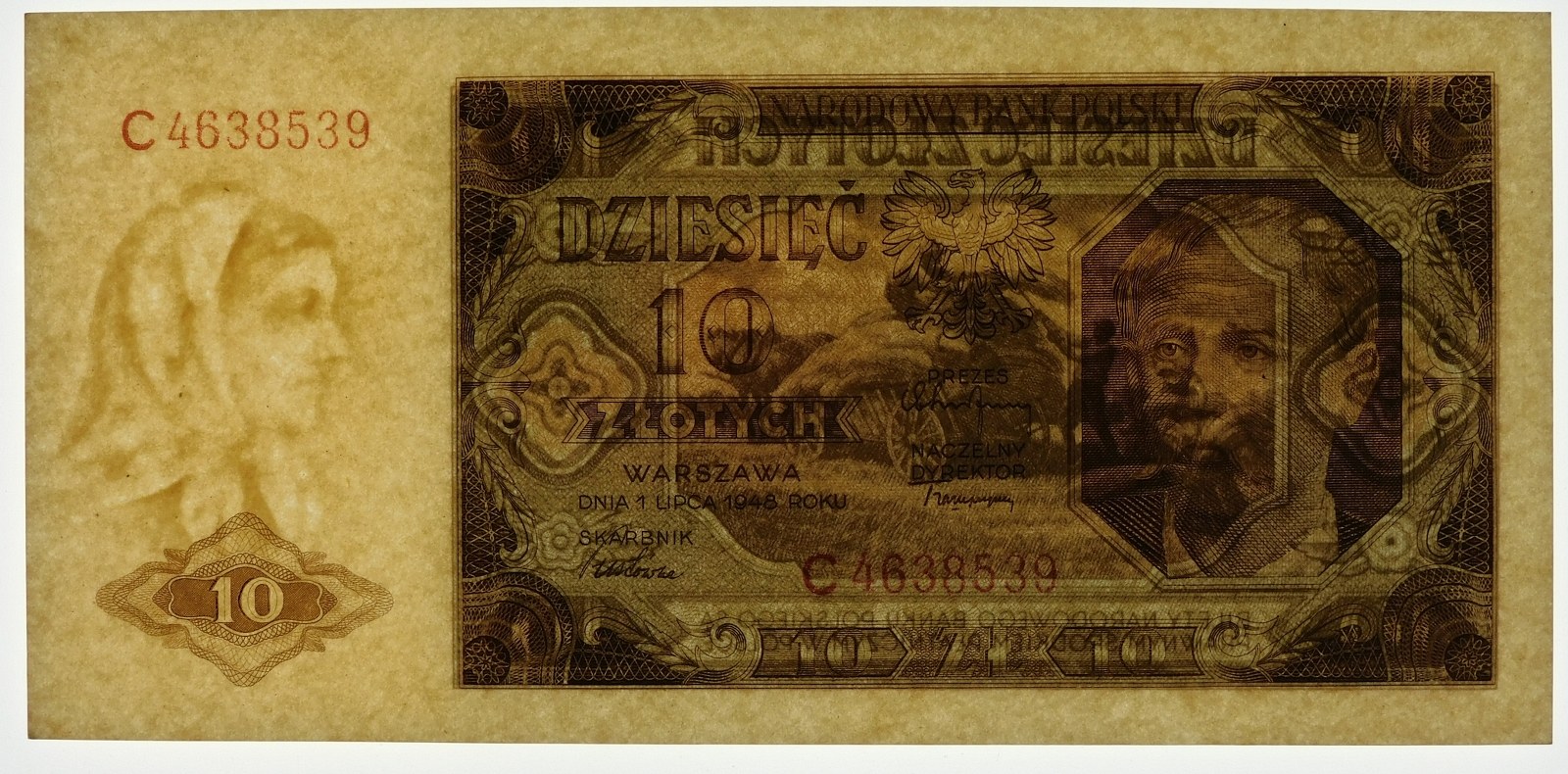 Banknot 10 złotych 1948, ser. C - rzadka odmiana o serii jednoliterowej.