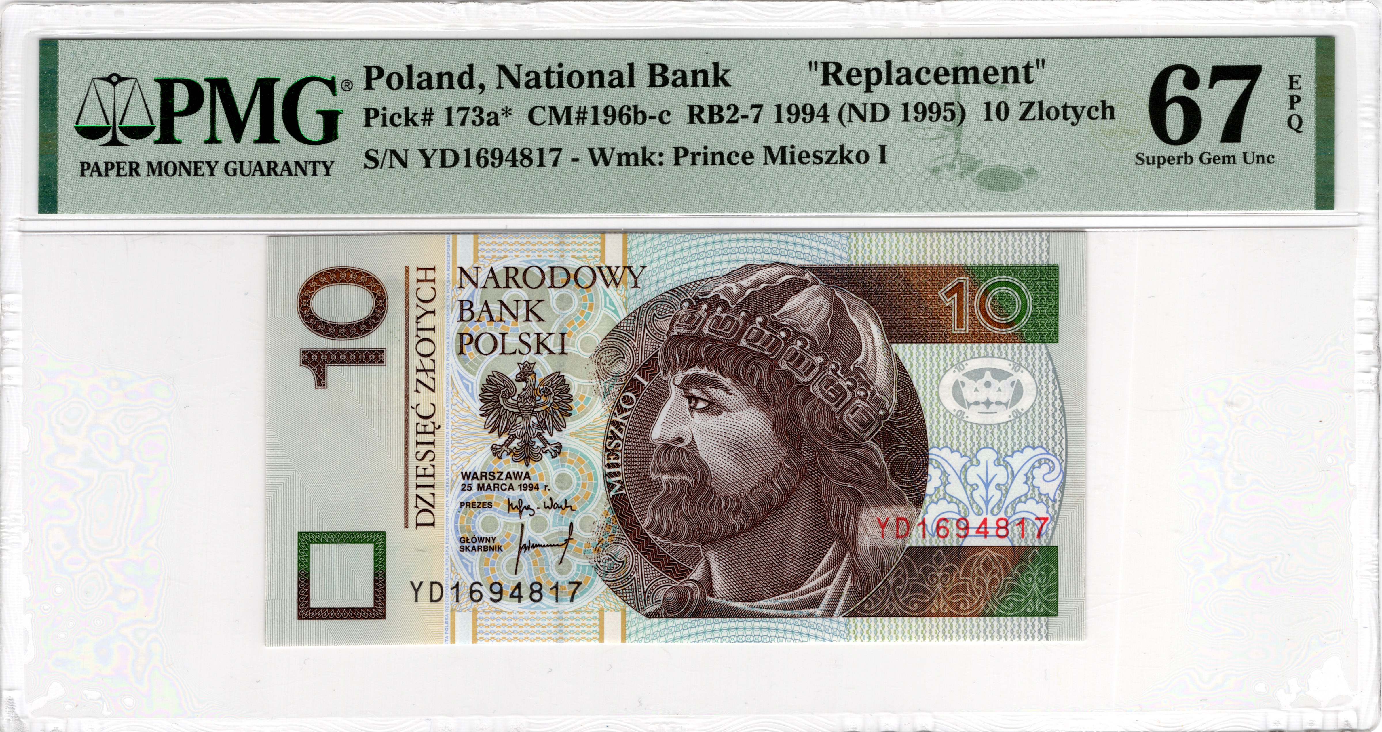 10 Złotych 1994, seria YD - seria zastępcza