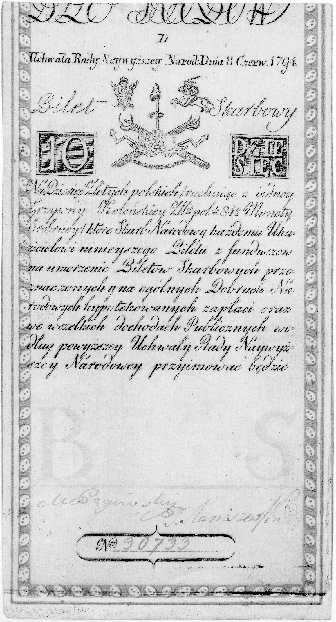 Insurekcja Kościuszkowska, 10 złotych 8.06.1794, Seria D, Pick A2