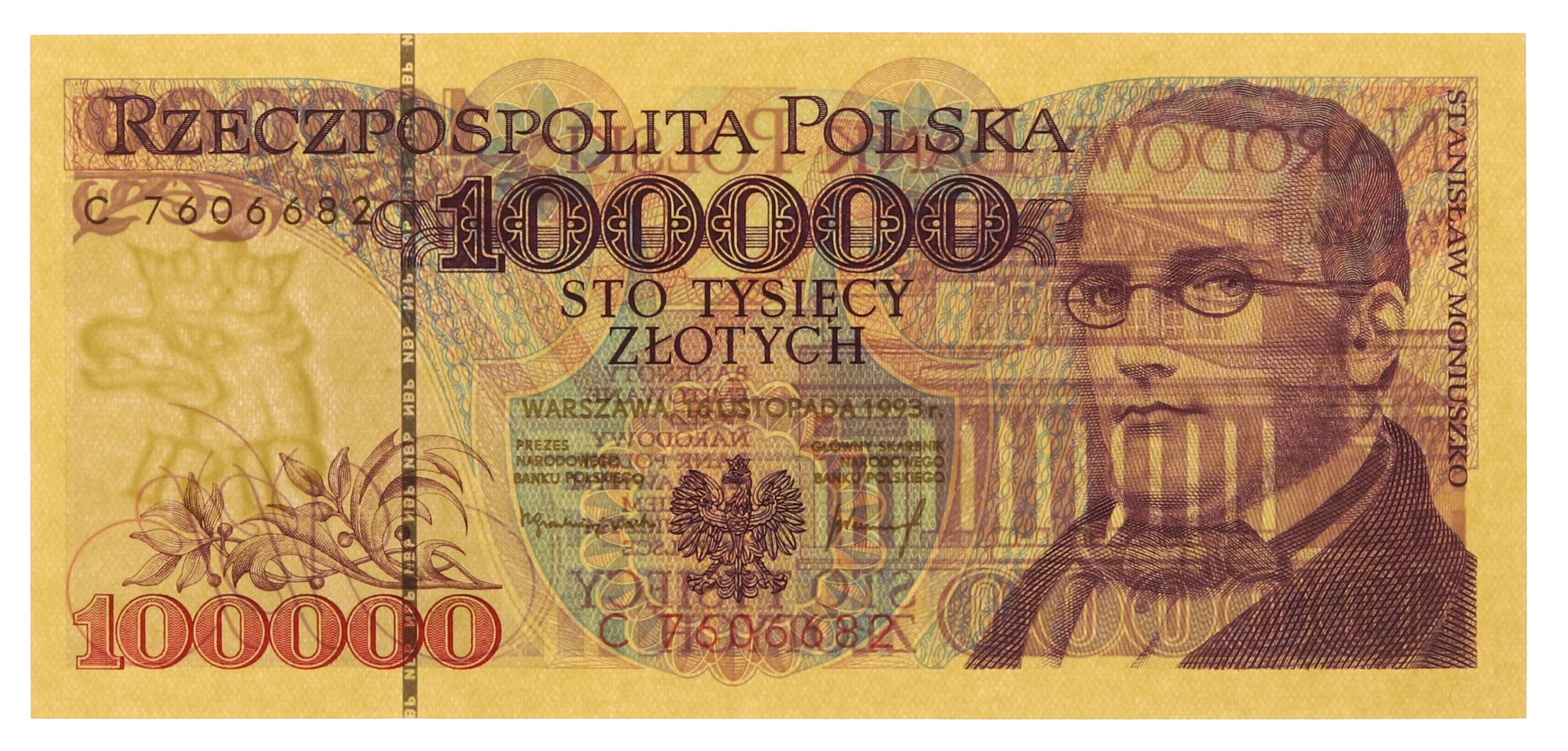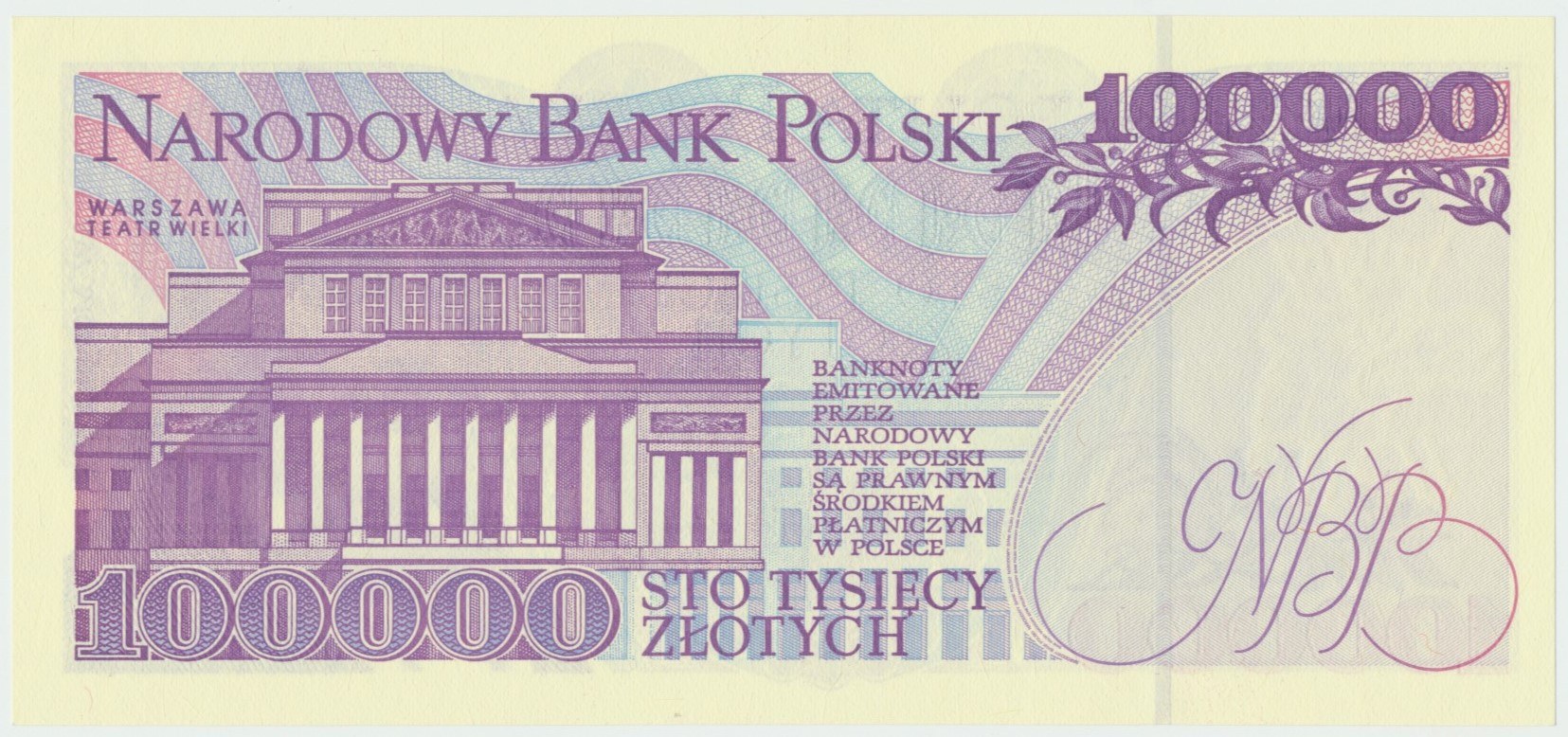 Banknot autorstwa Andrzeja Heidricha, znak wodny - w polu niezadrukowanym orzeł w koronie, pod nim litery RP.