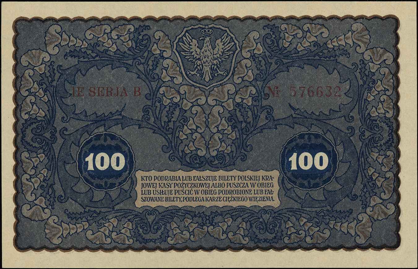 II Rzeczpospolita Polska 1918-1939, 100 marek polskich 23.08.1919, IE Serja B, Miłczak 27c, Lucow 388 (R0), piękne