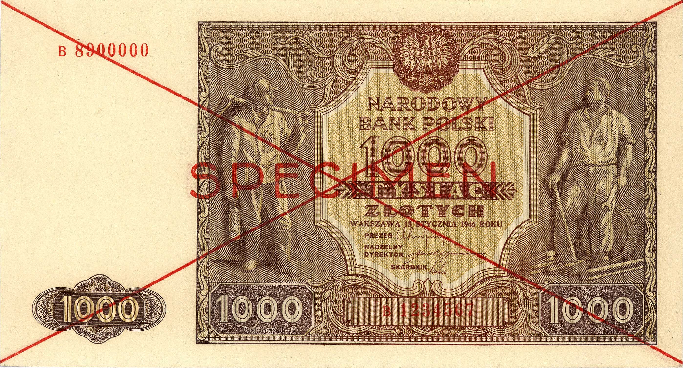 Banknoty powojenne 1944-1989, 1000 złotych 15.01.1946, seria B, SPECIMEN, Miłczak 122a