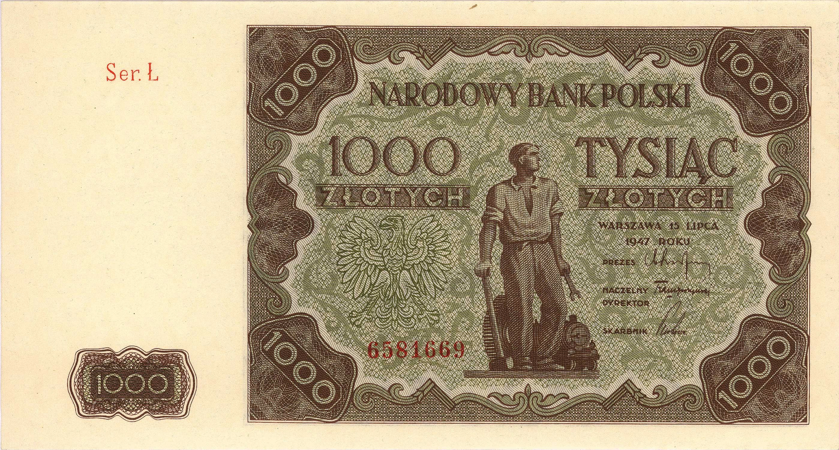 Banknoty powojenne 1944-1989, 1000 złotych 15.07.1947, seria Ł, Miłczak 133a