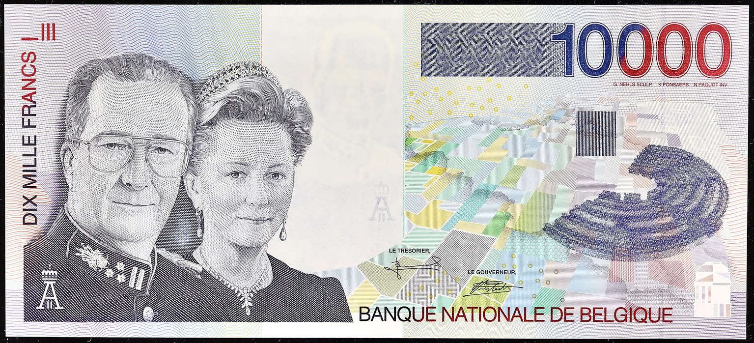 Pas d’alphabet, numéro 90901349321, avec le portrait du roi Roi Albert II et de la reine sur le côté gauche au recto du billet de banque. Ce type est recherché dans un état de conservation neuf.