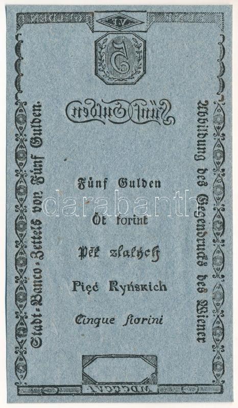 1806. 5G hátoldali Formulare "Bécsi városi bankócédula" kék papíron T:AU / Habsburg Monarchy 1806...