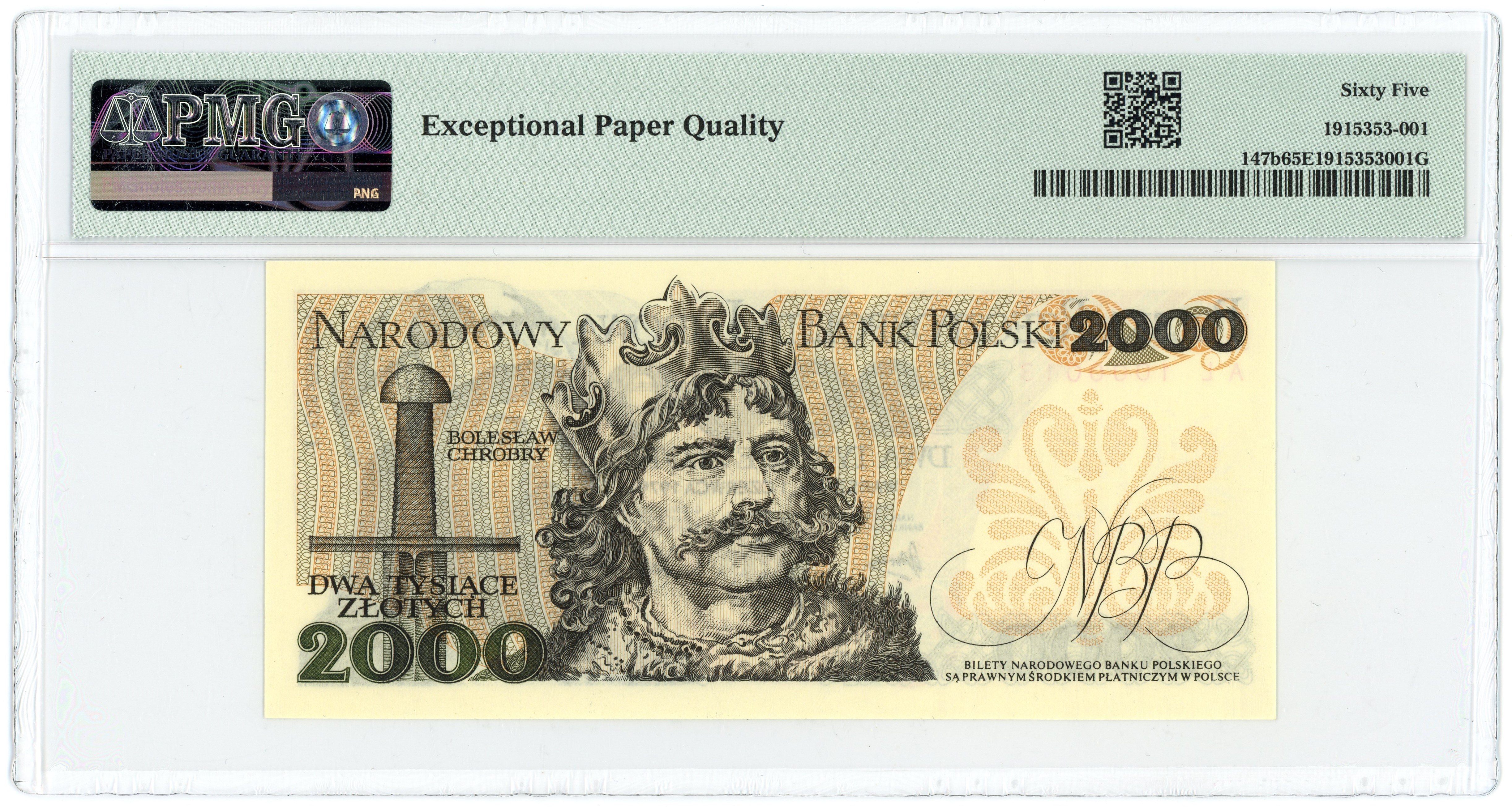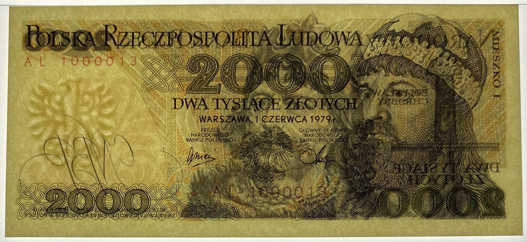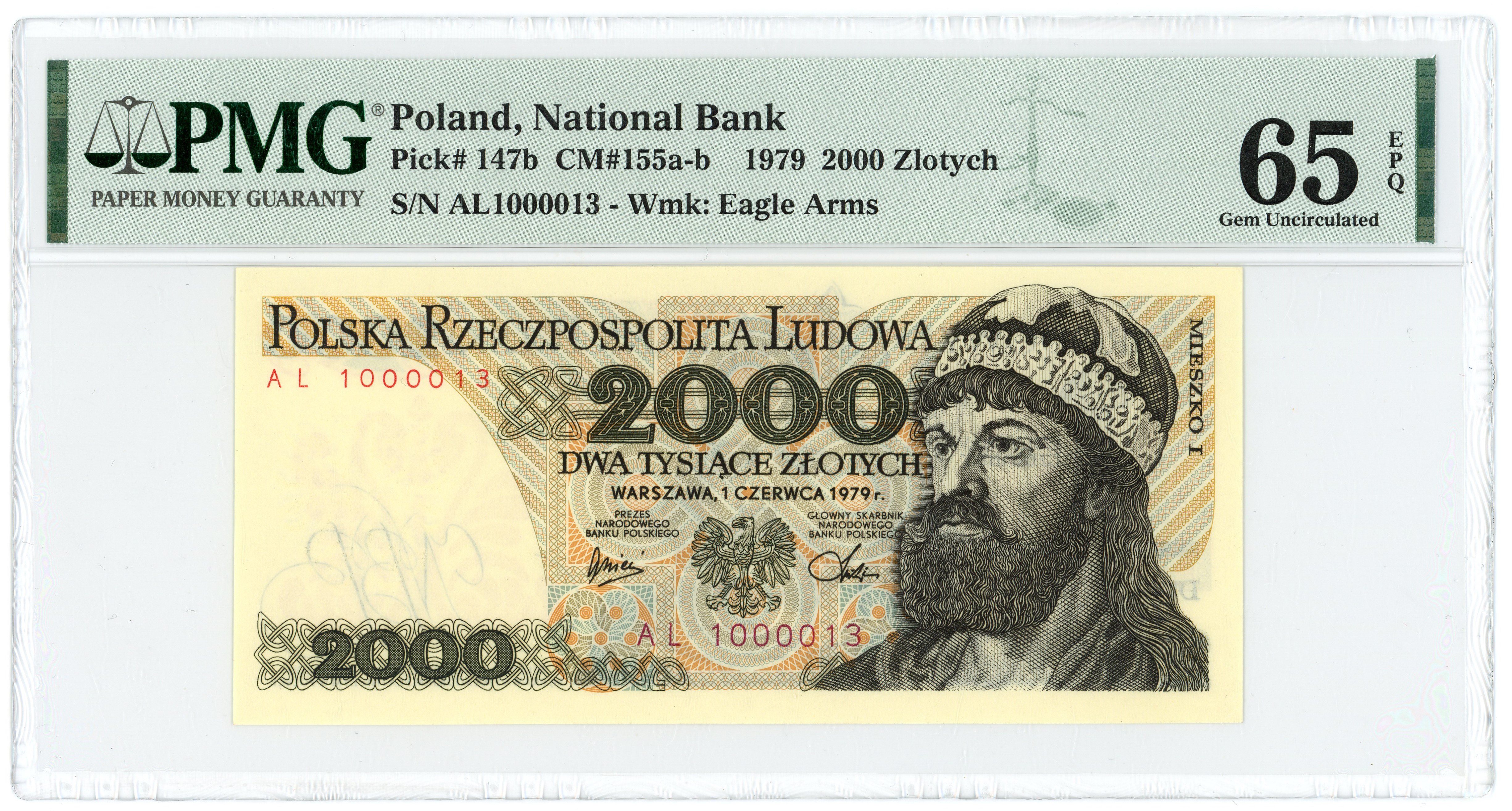 2.000 złotych 1979 - seria AL 1000013 - ciekawa numeracja - PMG 65 EPQ