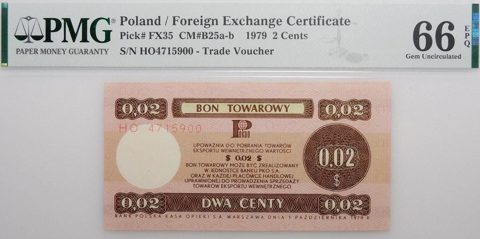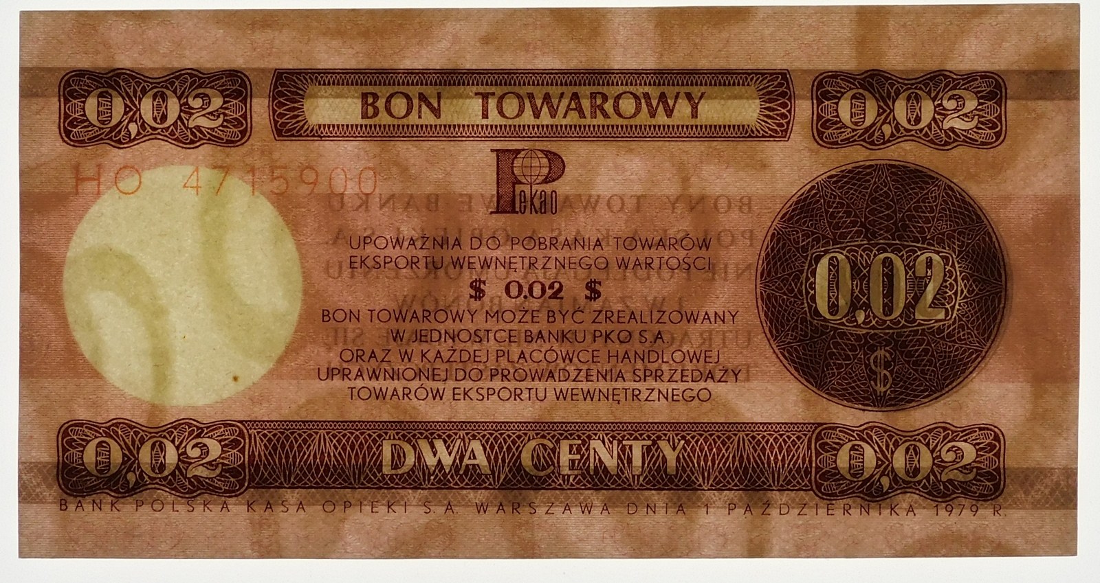 Bon PeKaO o nominale 2 centów 1979, ser. HO - wymiar duży.