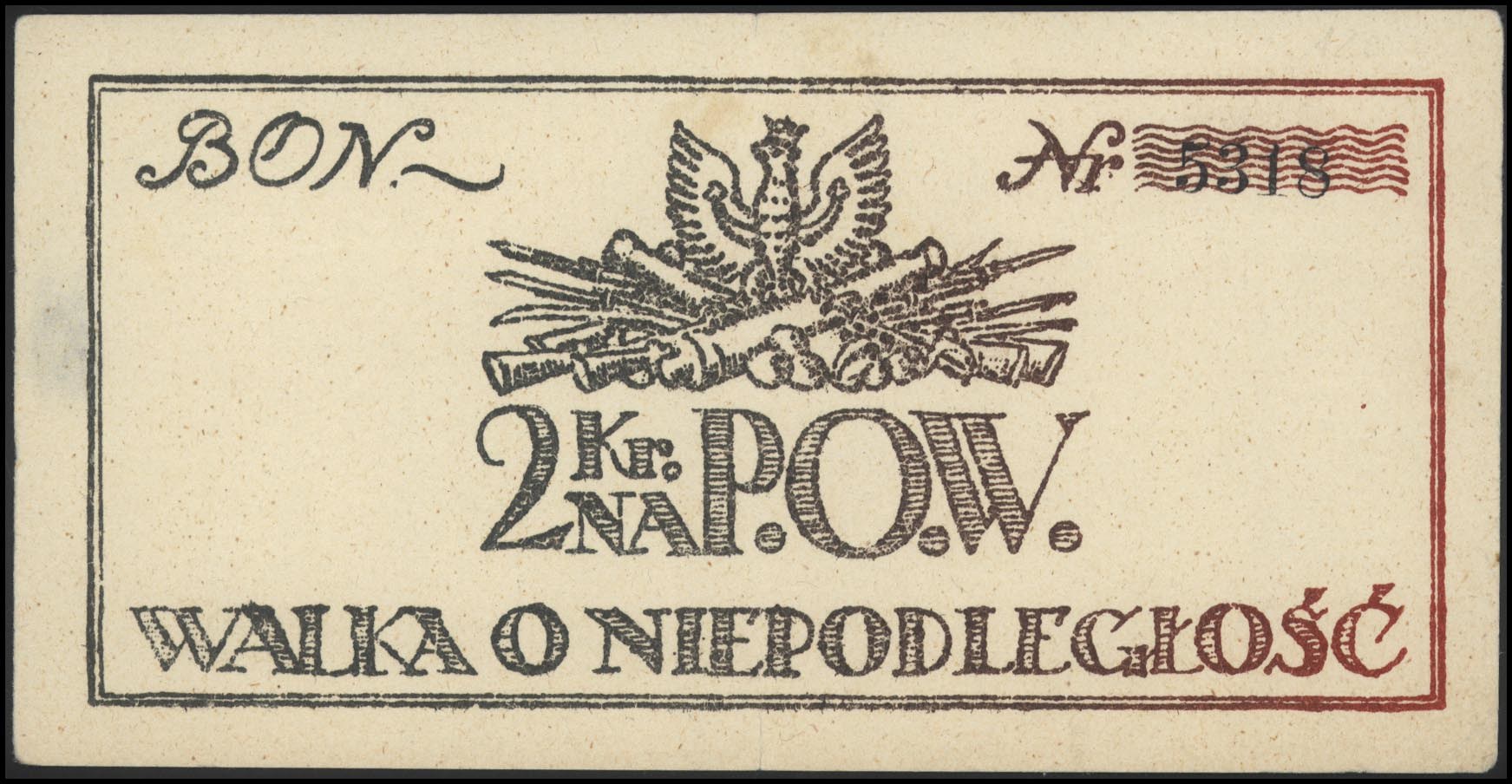 Bony wydane na cele patriotyczne, 2 korony 1918, datek na Polską Organizację Wojskową, Jabł. 700, Lucow 503 R2