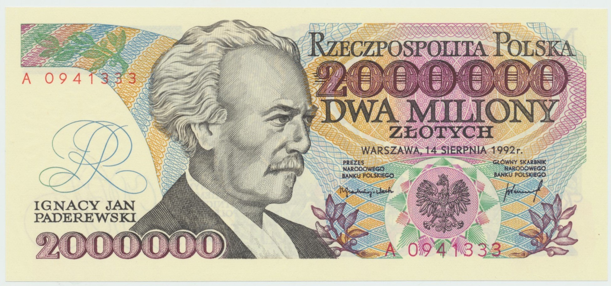 Banknot autorstwa Andrzeja Heidricha, znak wodny - w polu niezadrukowanym orzeł bez korony.