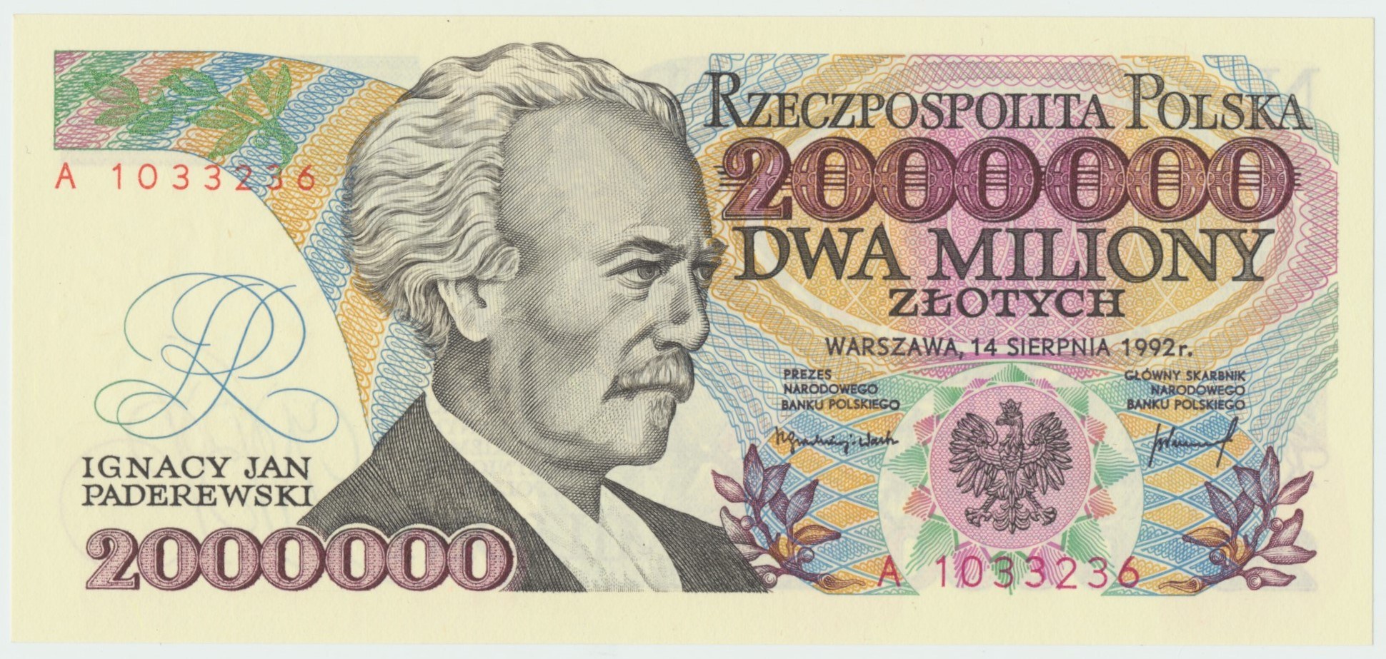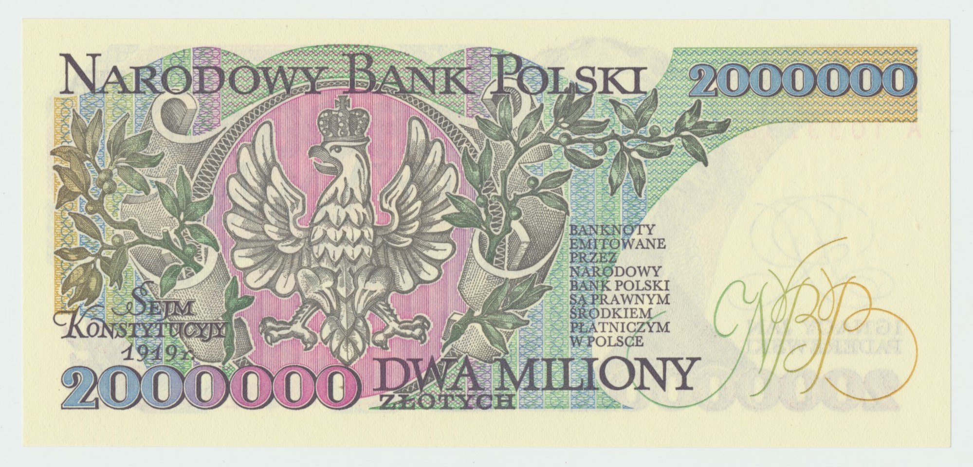 Banknot autorstwa Andrzeja Heidricha, znak wodny - w polu niezadrukowanym orzeł bez korony.