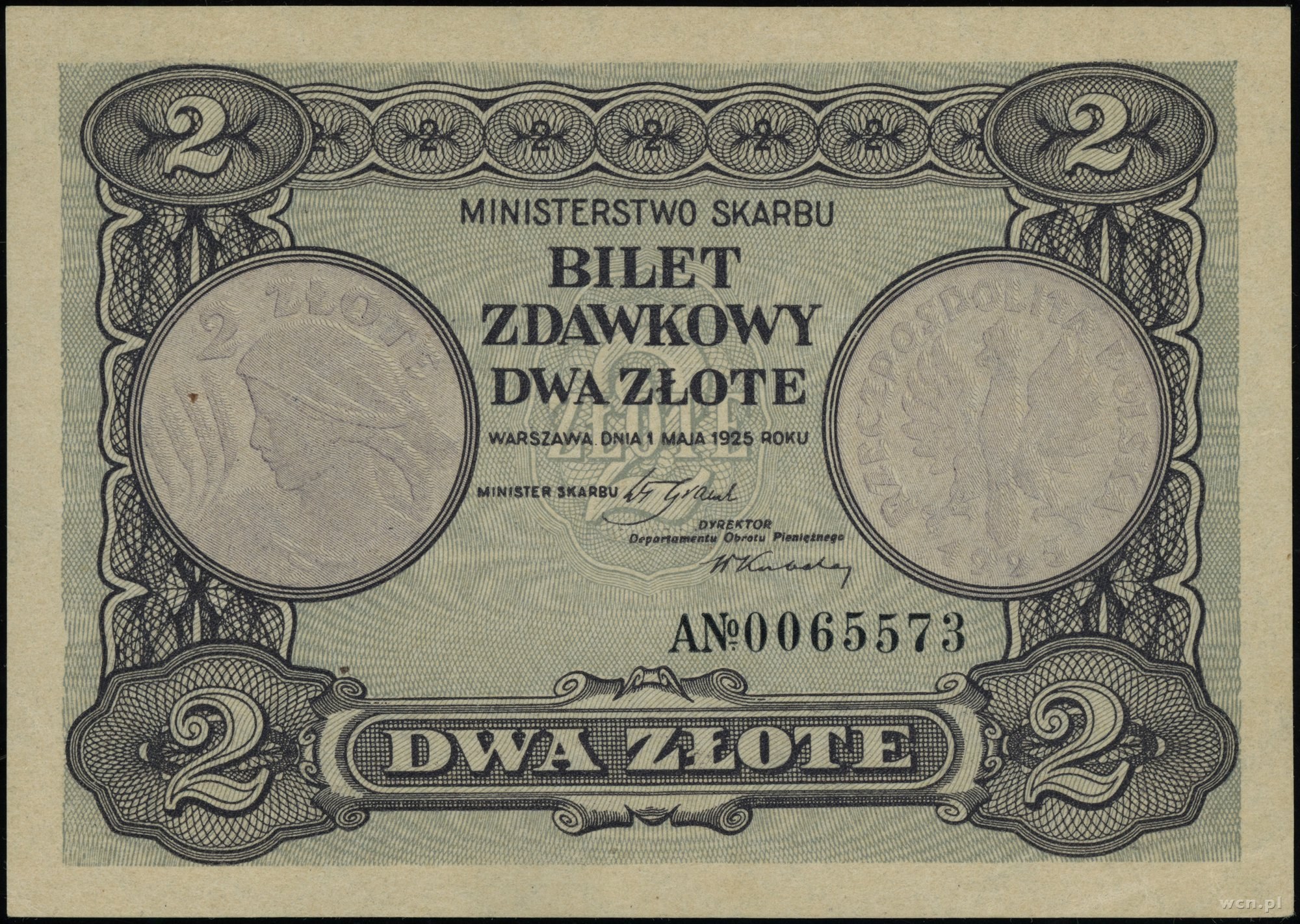 2 złote, 1.05.1925; seria A, numeracja 0065573; Lucow 7...