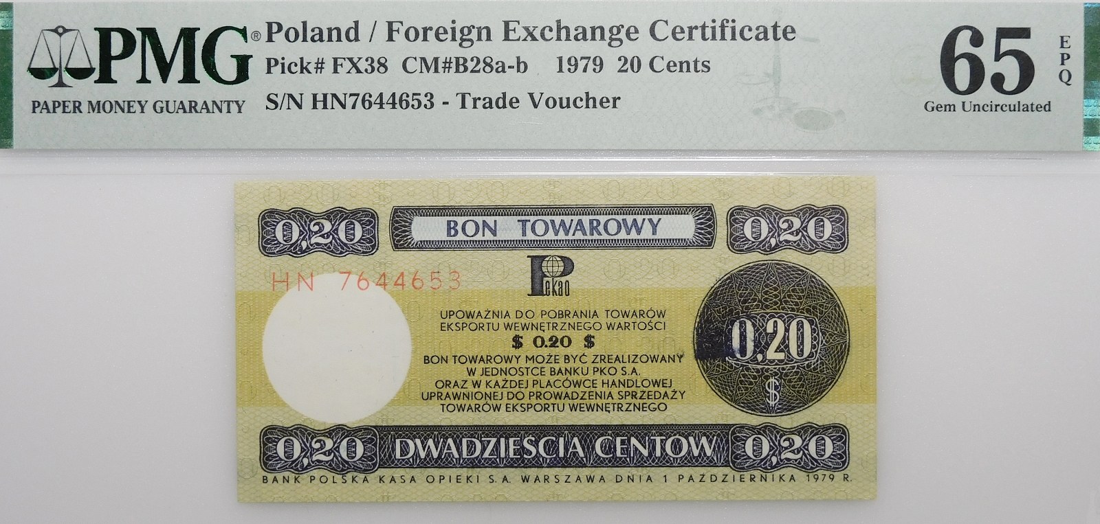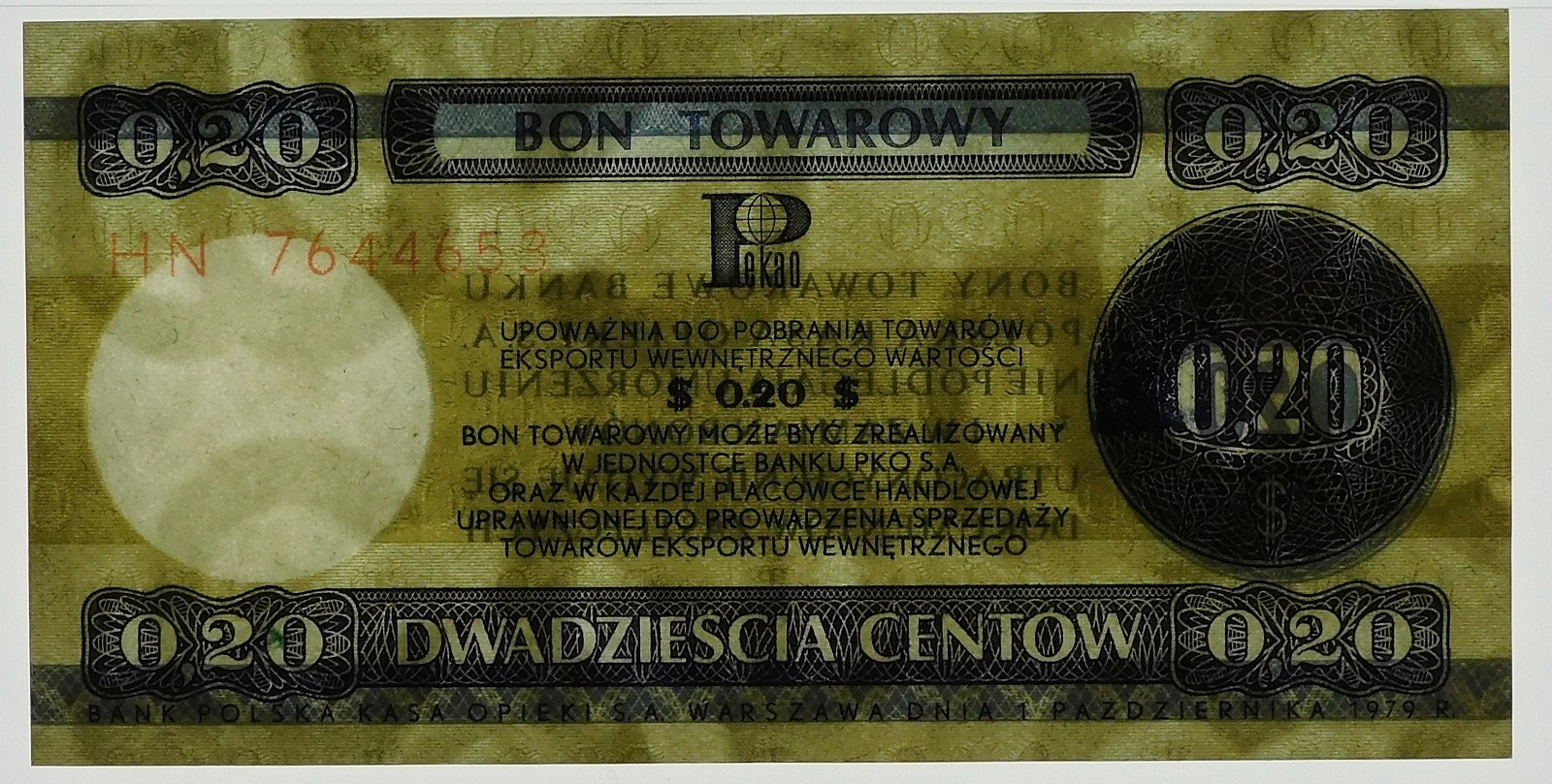 Bon PeKaO o nominale 20 centów 1979, ser. HN - wymiar mały.