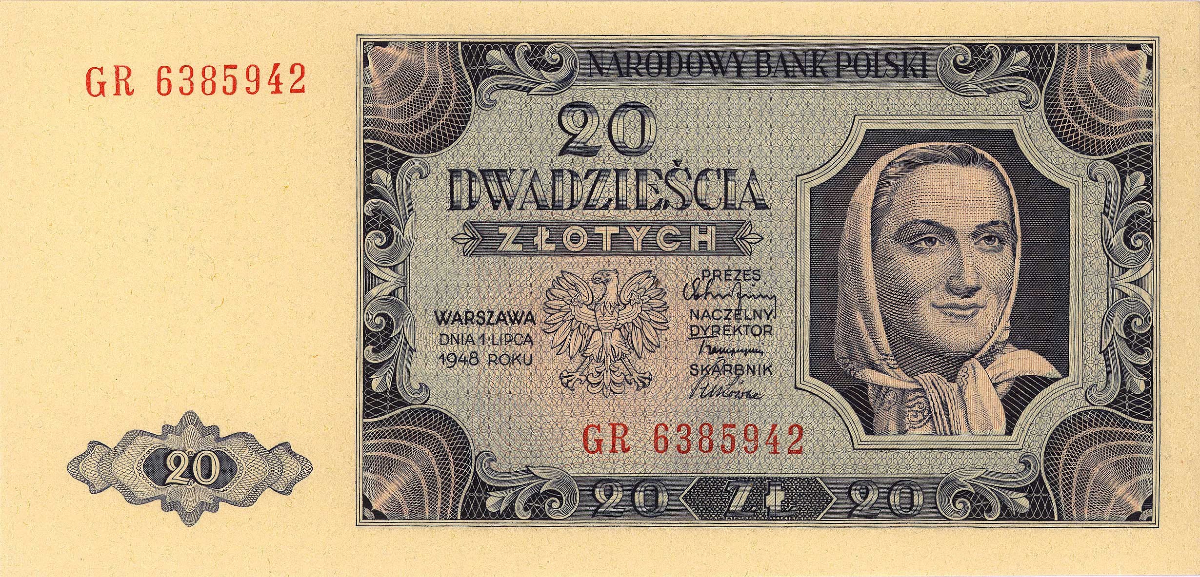 Banknoty powojenne 1944-1989, 20 złotych 1.07.1948, seria GR, Miłczak 137f