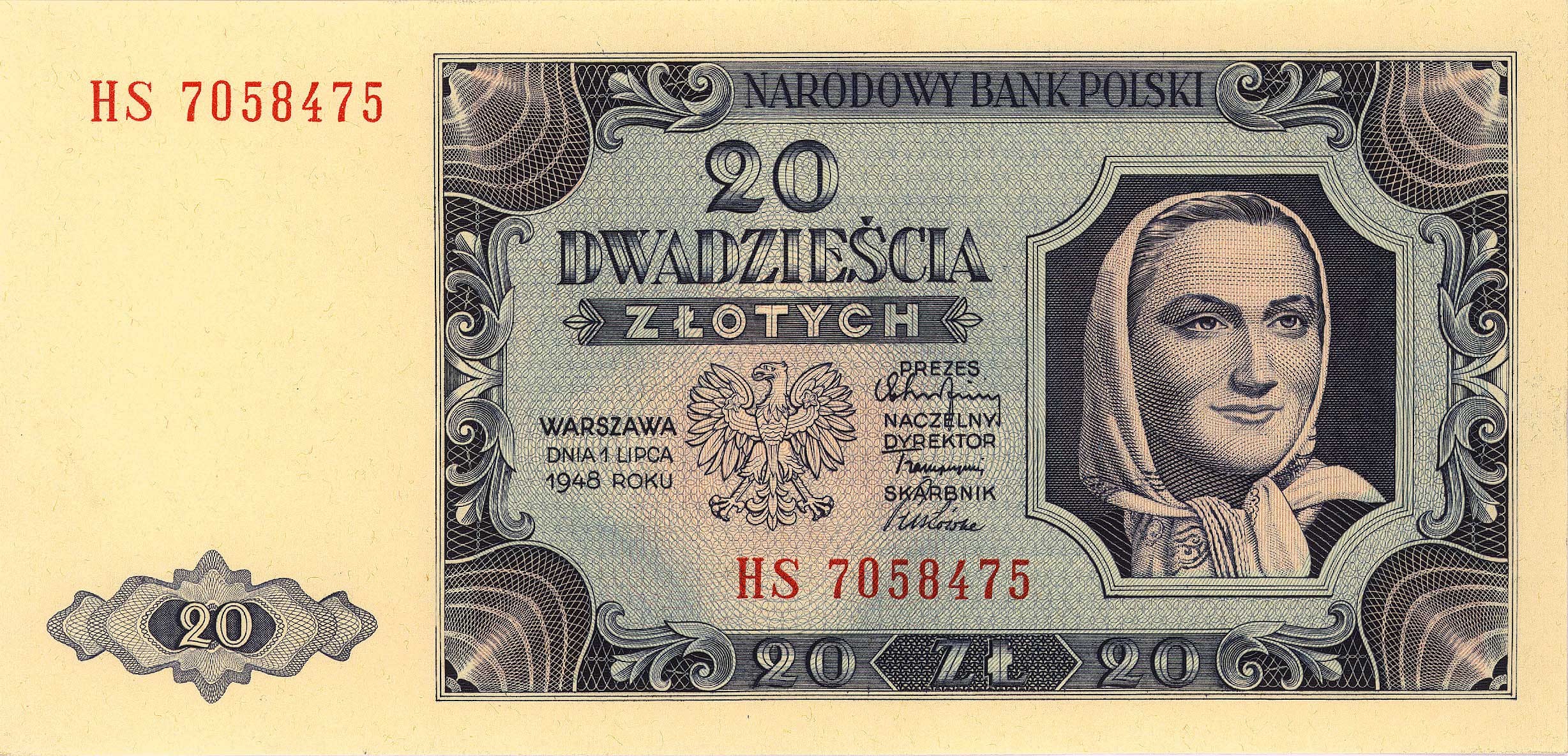 Banknoty powojenne 1944-1989, 20 złotych 1.07.1948, seria HS, Miłczak 137f