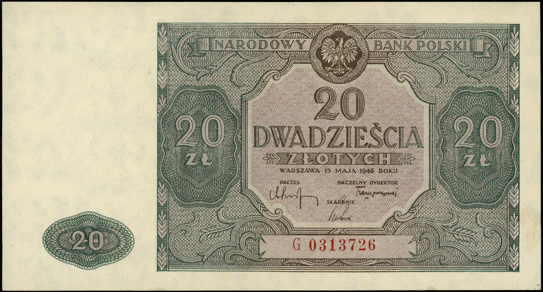 20 złotych 15.05.1946, seria G, Miłczak 127b, Lucow 119...