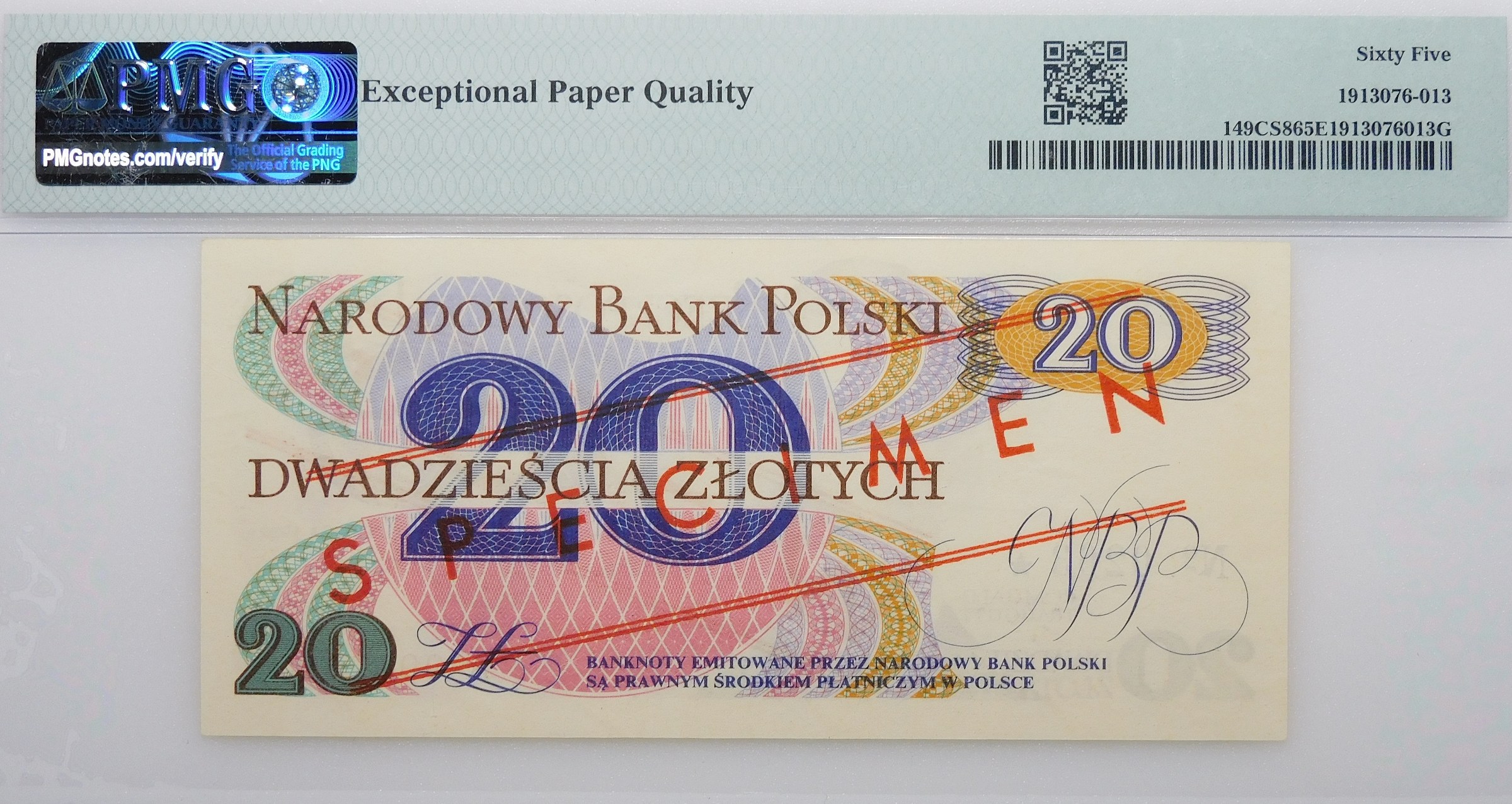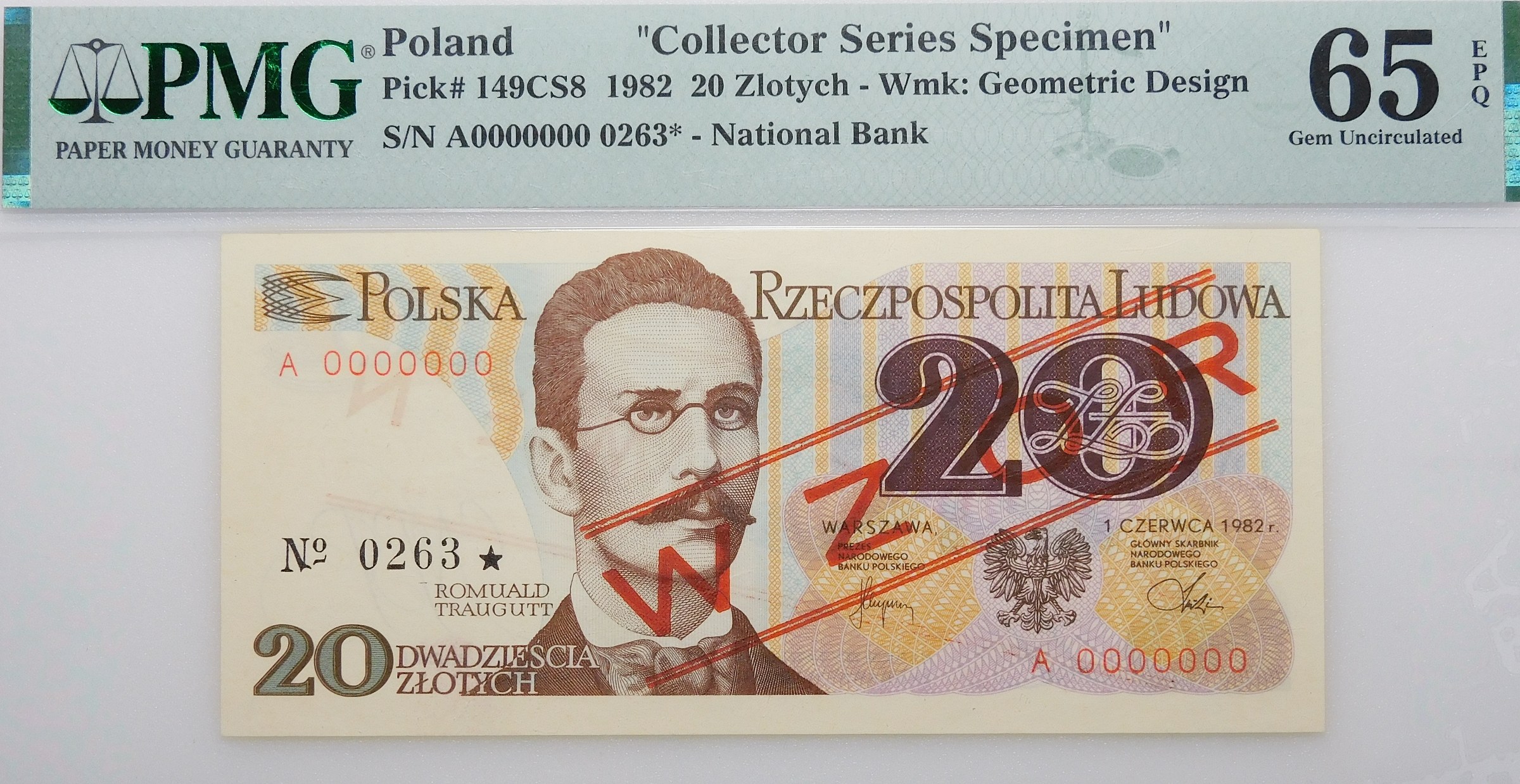 Banknot 20 złotych 1982, ser. A - WZÓR - numeracja zerowa - nr nakładowy wzoru : 0263*